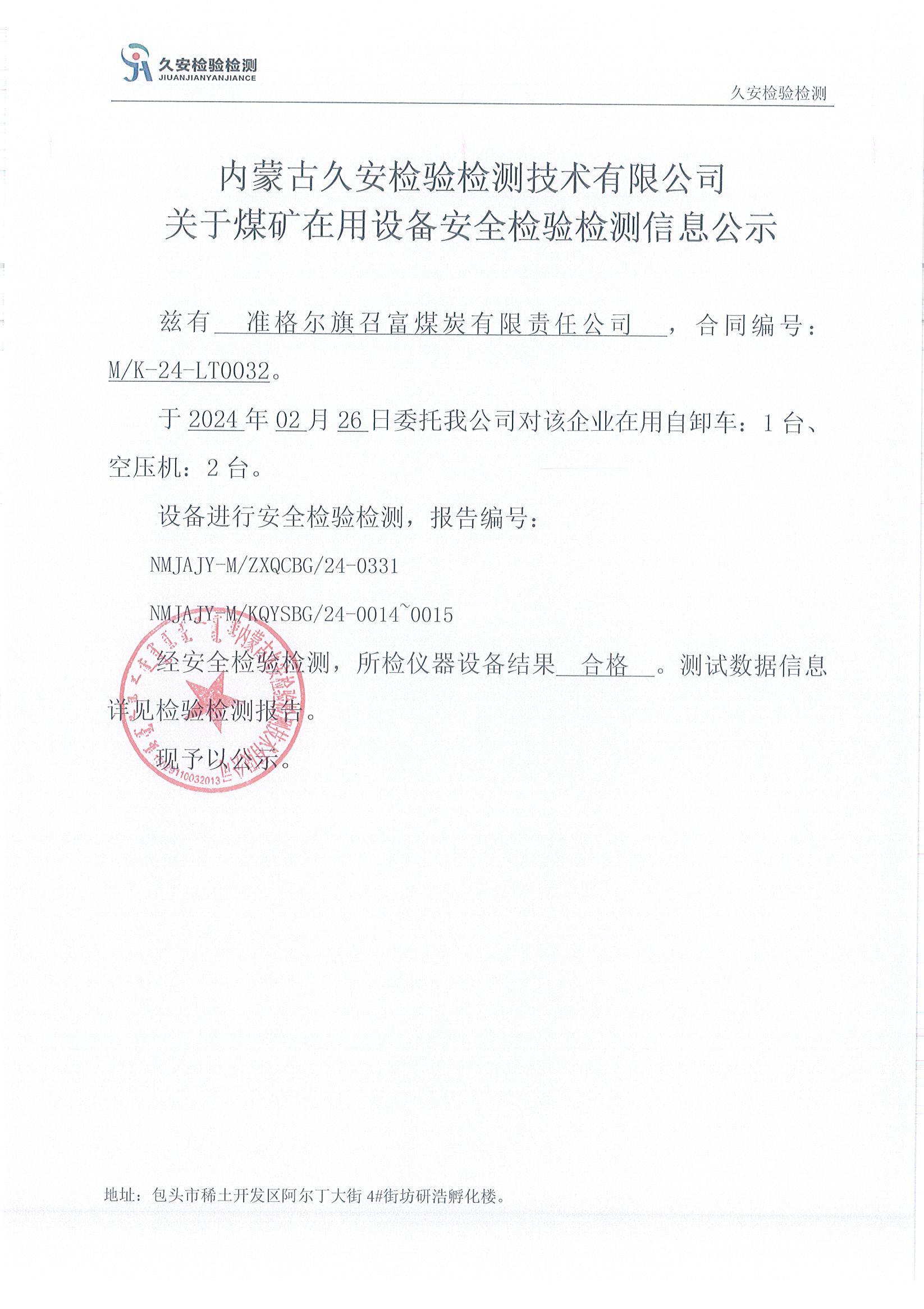 23、准格尔旗召富煤炭有限责任公司在用设备安全检验检测信息公示