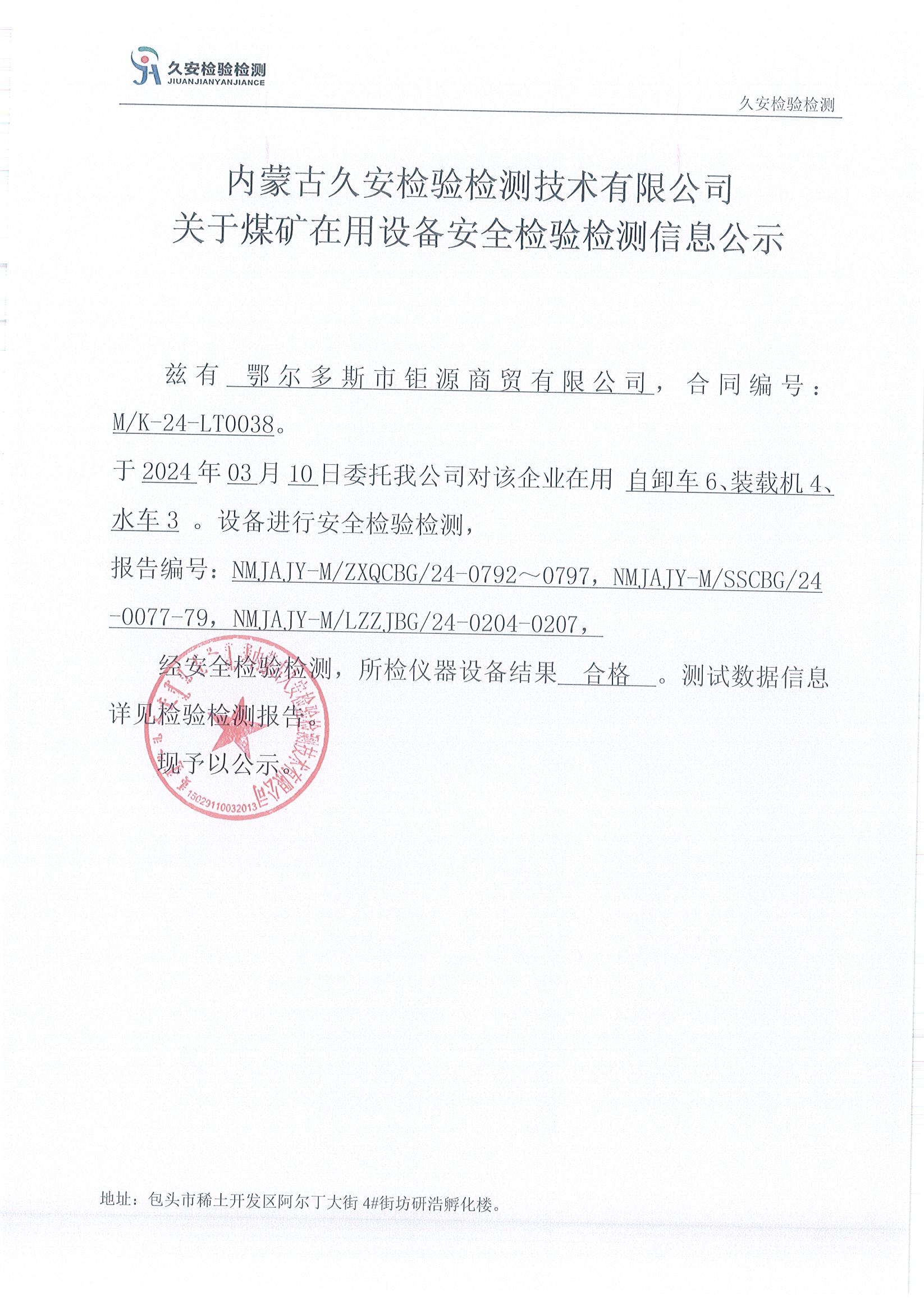 28、鄂尔多斯市钜源商贸有限公司在用设备安全检验检测信息公示