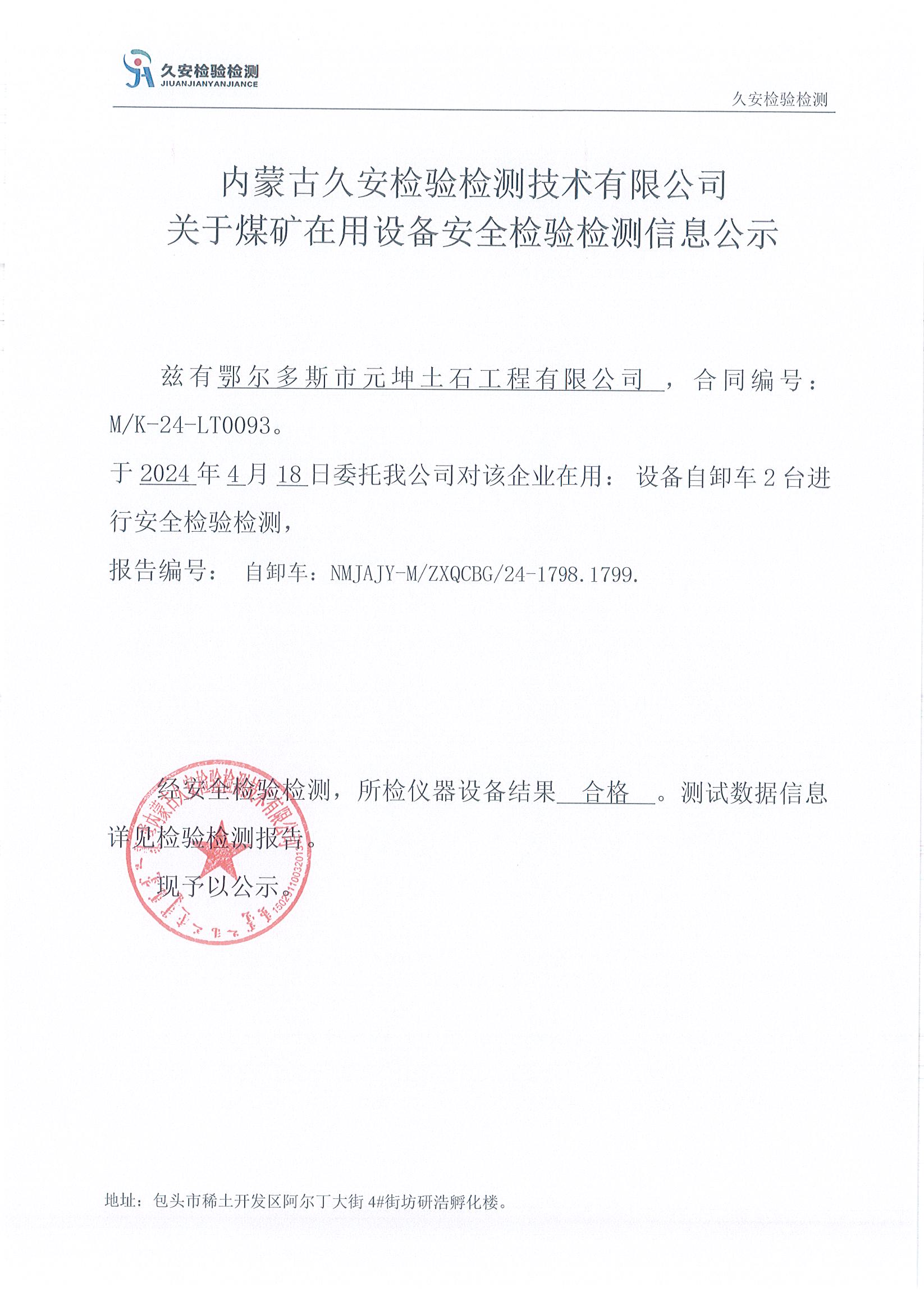 97、鄂尔多斯市元坤土石工程有限公司在用设备安全检验检测信息公示