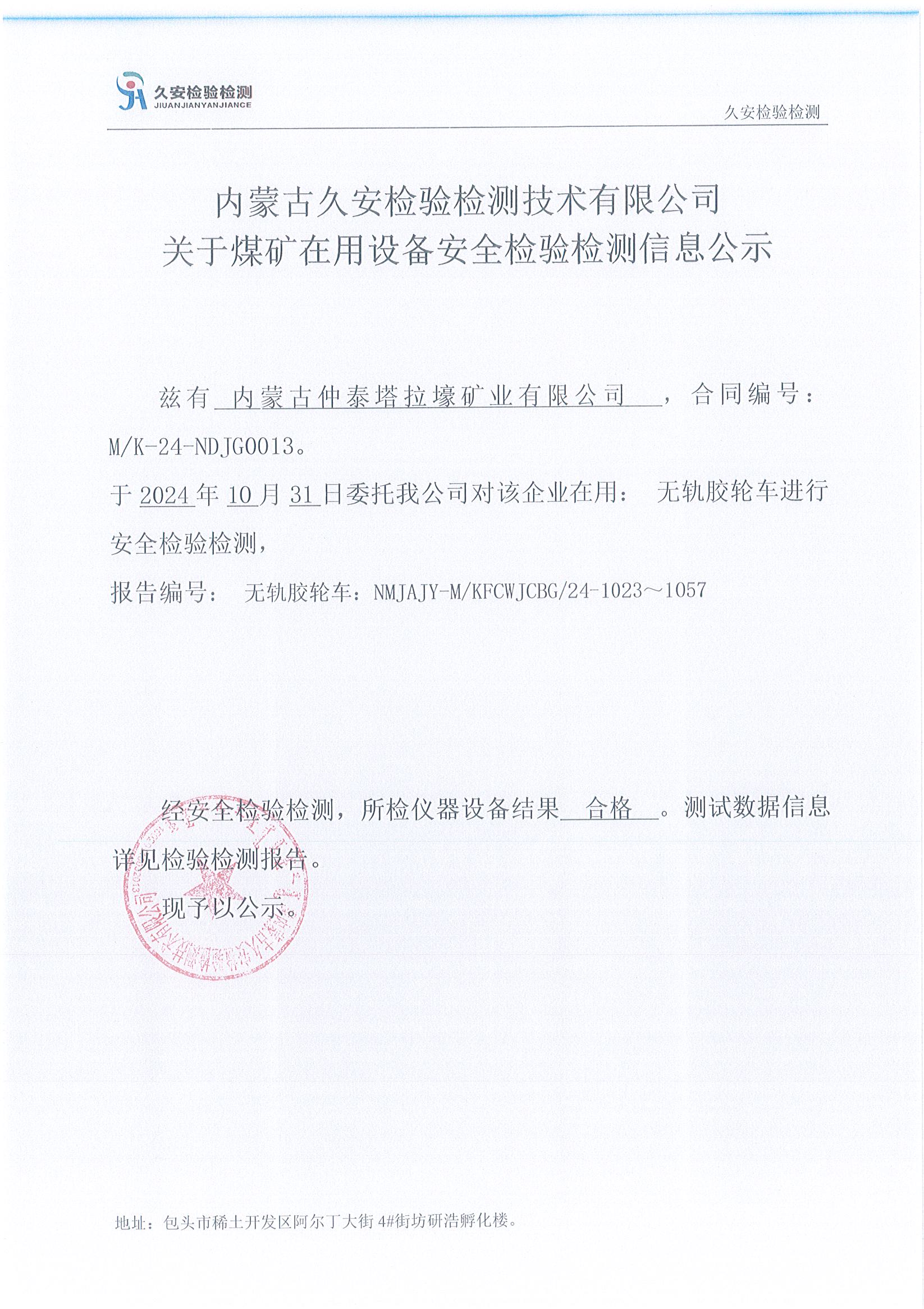 93、内蒙古仲泰塔拉壕矿业有限公司煤矿在用设备安全检验检测信息公示