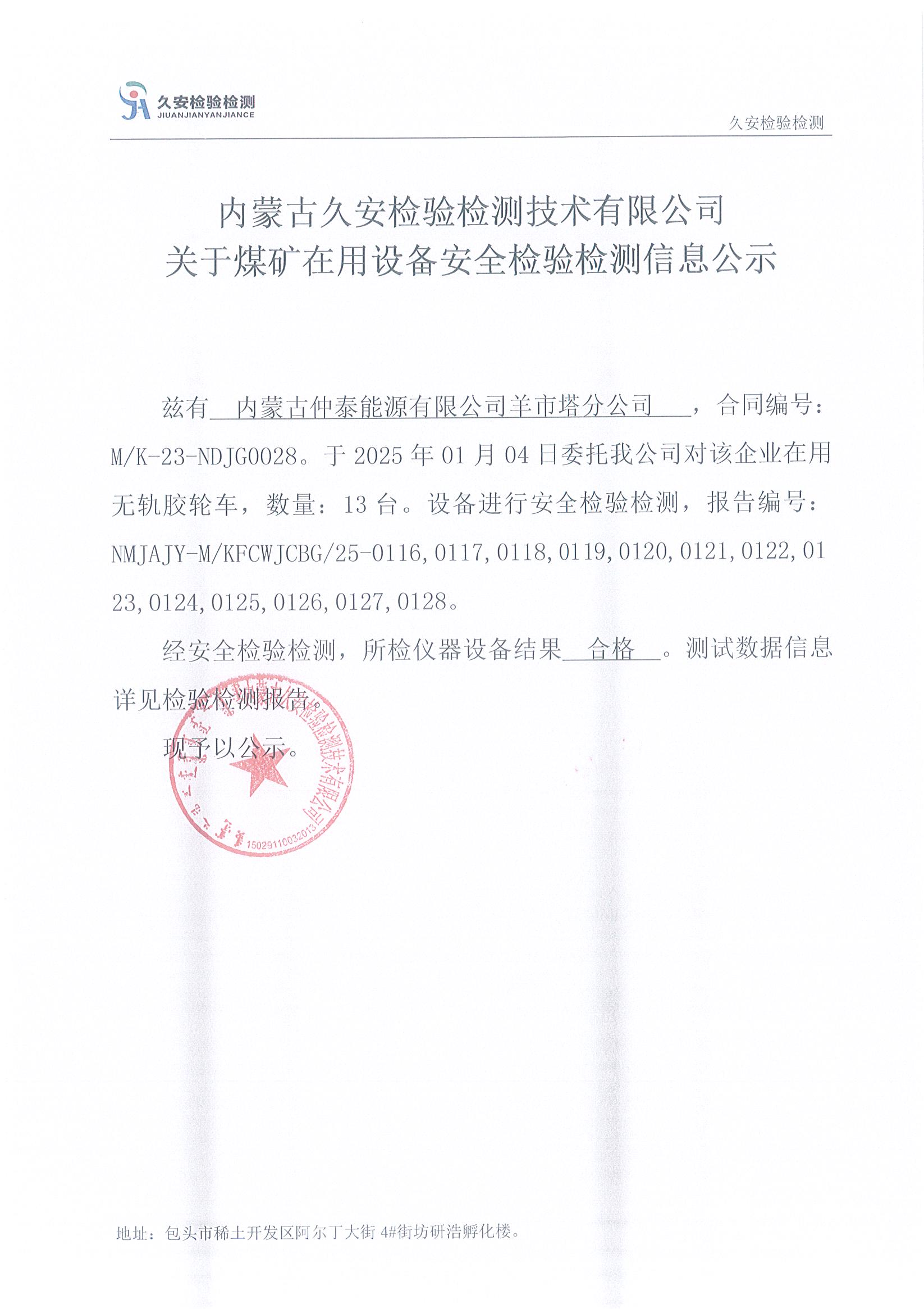 4.内蒙古仲泰能源有限公司羊市塔分公司煤矿在用设备安全检验检测信息公示