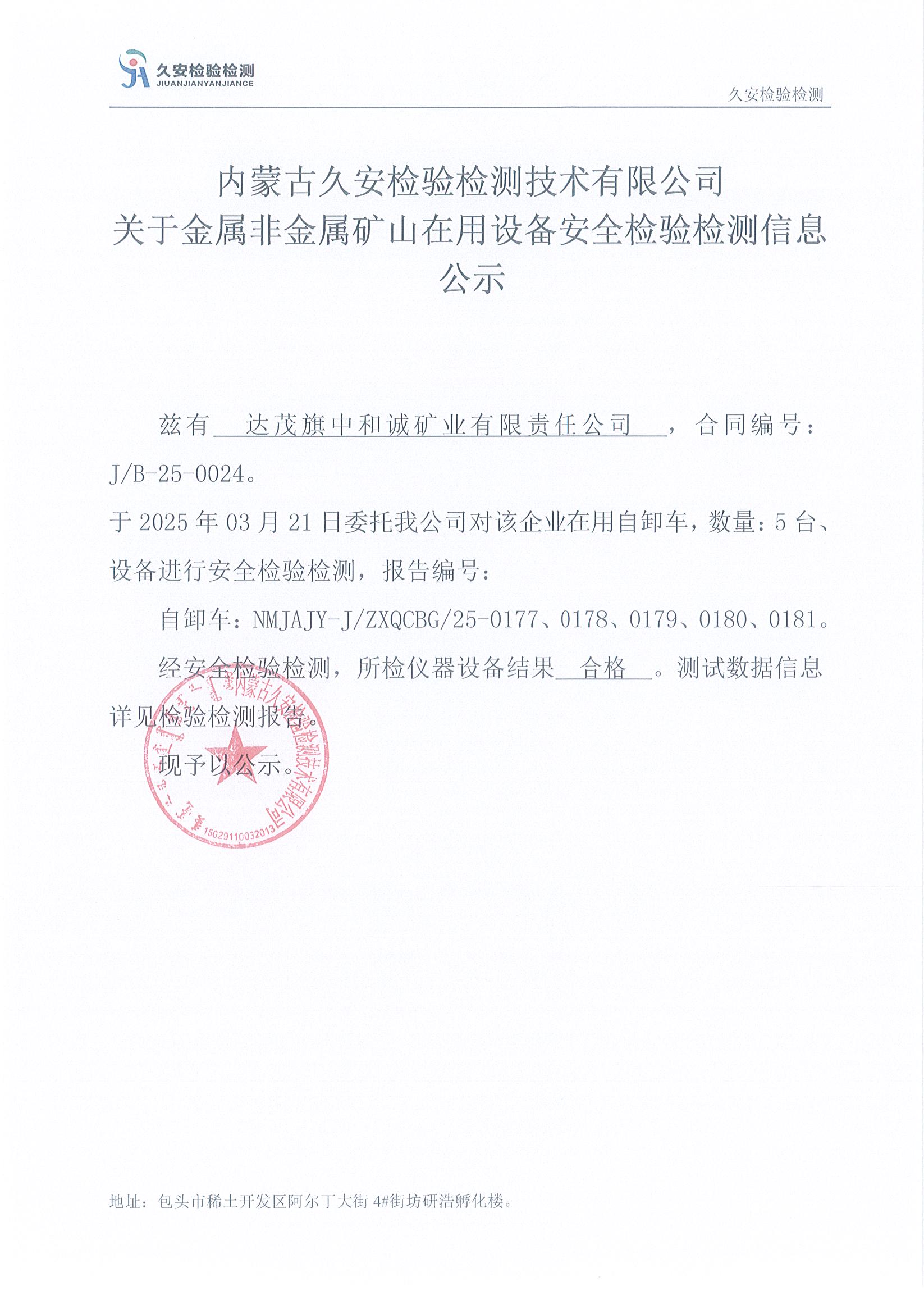 2.0达茂旗中和诚矿业有限责任公司金属非金属矿山在用设备安全检验检测信息公示