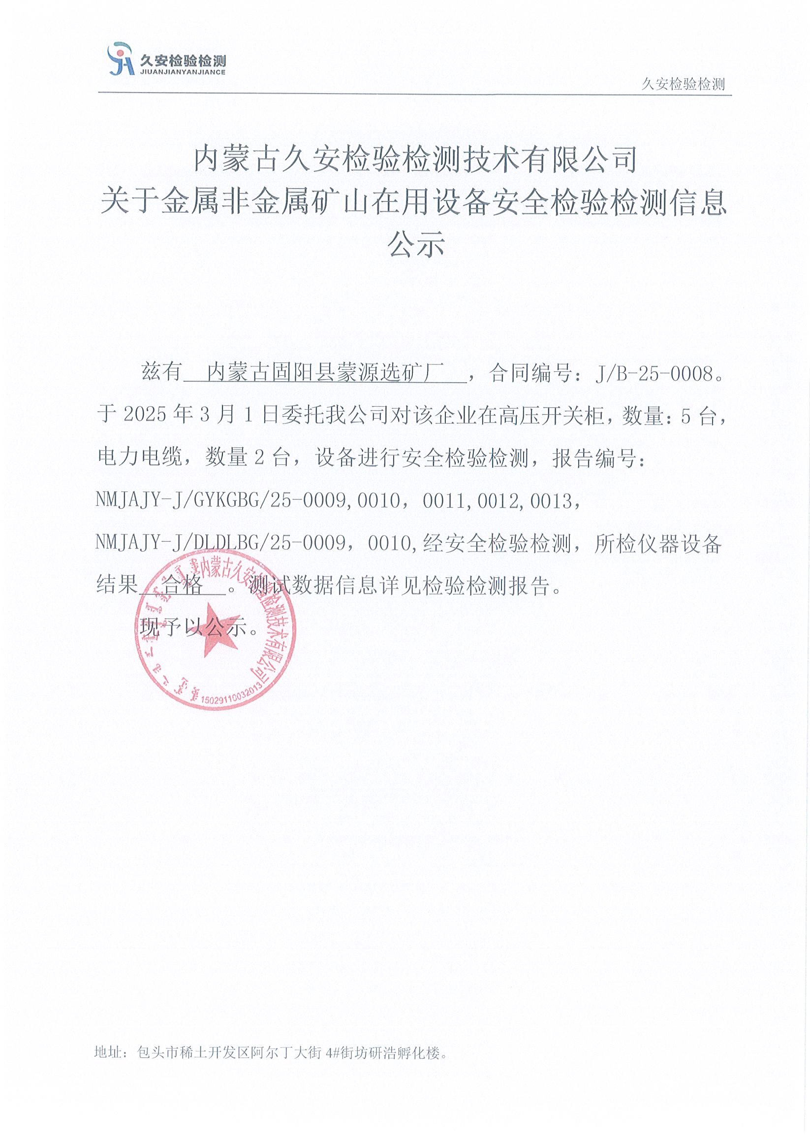 12.内蒙古固阳县蒙源选矿厂金属非金属矿山在用设备安全检验检测信息公示
