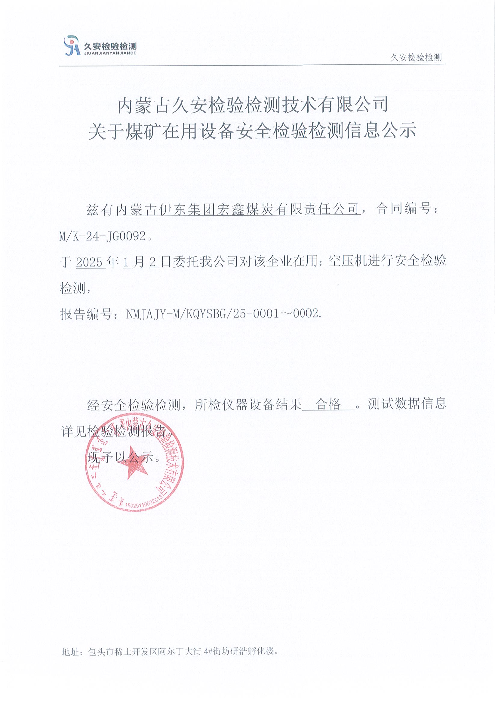 6.内蒙古伊东集团宏鑫煤炭有限责任公司煤矿在用设备安全检验检测信息公示