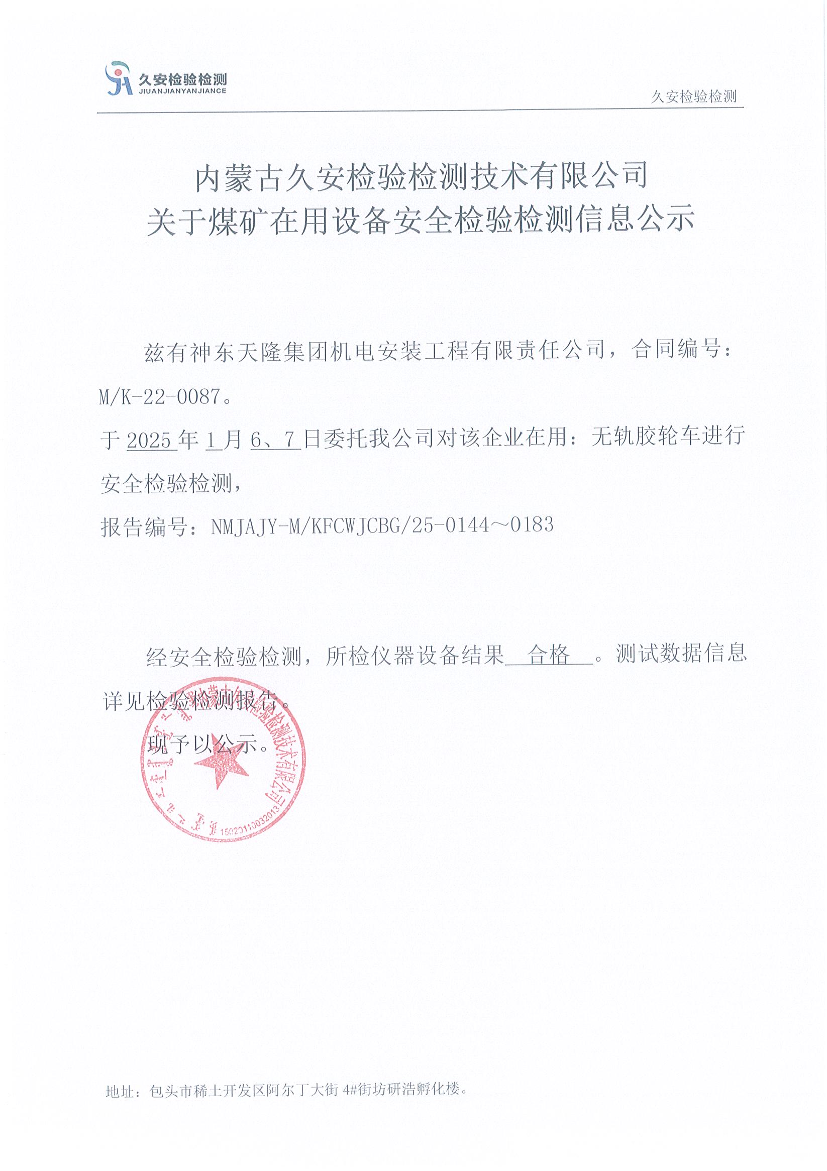 7.神东天隆集团机电安装工程有限责任公司煤矿在用设备安全检验检测信息公示