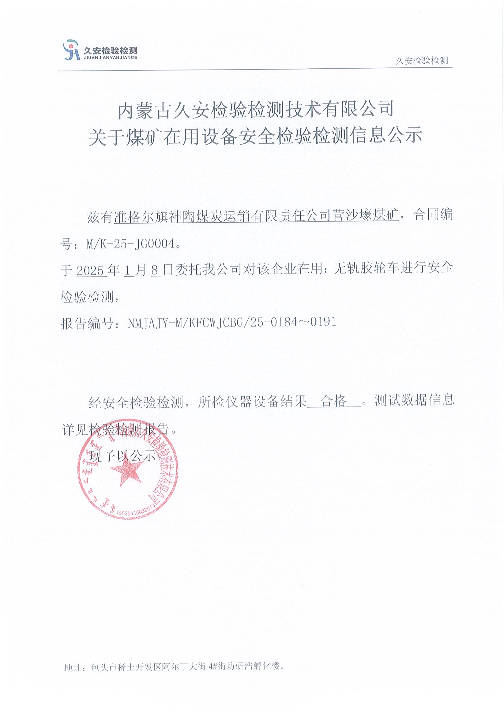 9.准格尔旗神陶煤炭运销有限责任公司营沙壕煤矿煤矿在用设备安全检验检测信息公示