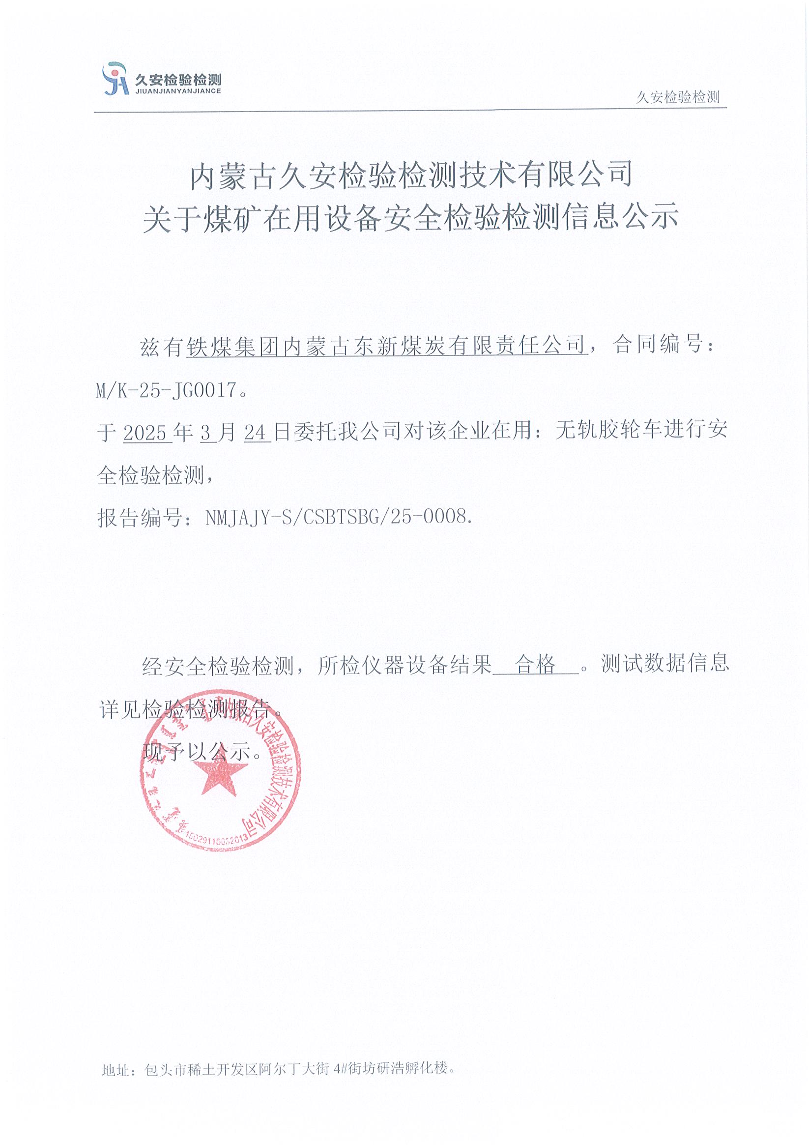 11.铁煤集团内蒙古东新煤炭有限责任公司煤矿在用设备安全检验检测信息公示