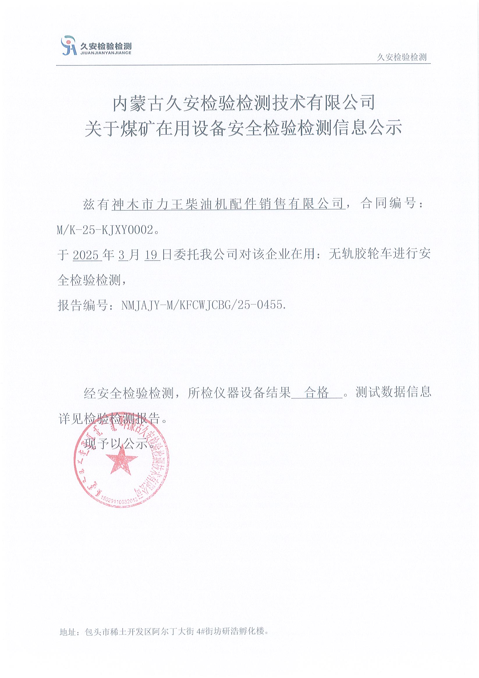 12.神木市力王柴油机配件销售有限公司煤矿在用设备安全检验检测信息公示