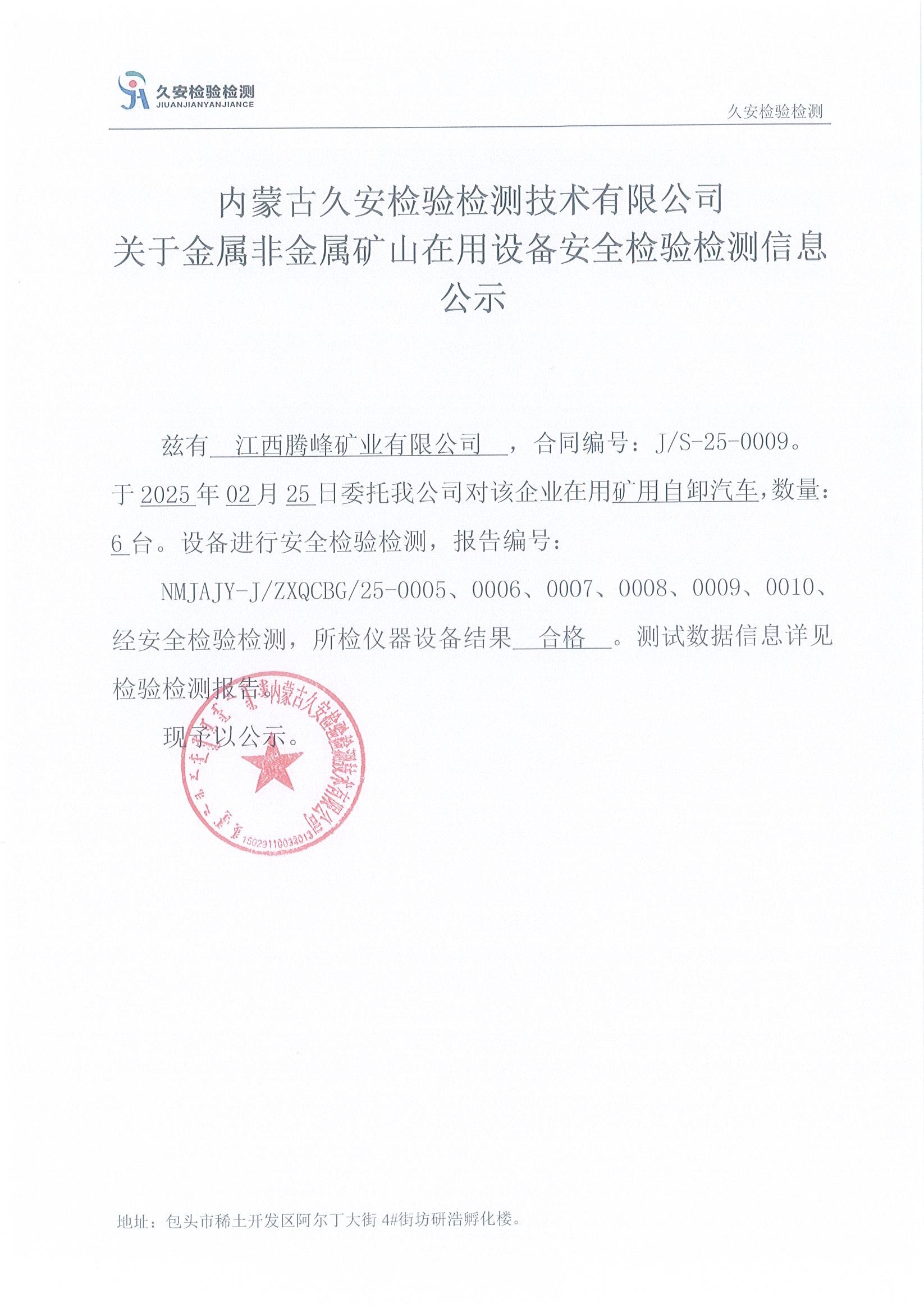 19.江西腾峰矿业有限公司金属非金属矿山在用设备安全检验检测信息公示