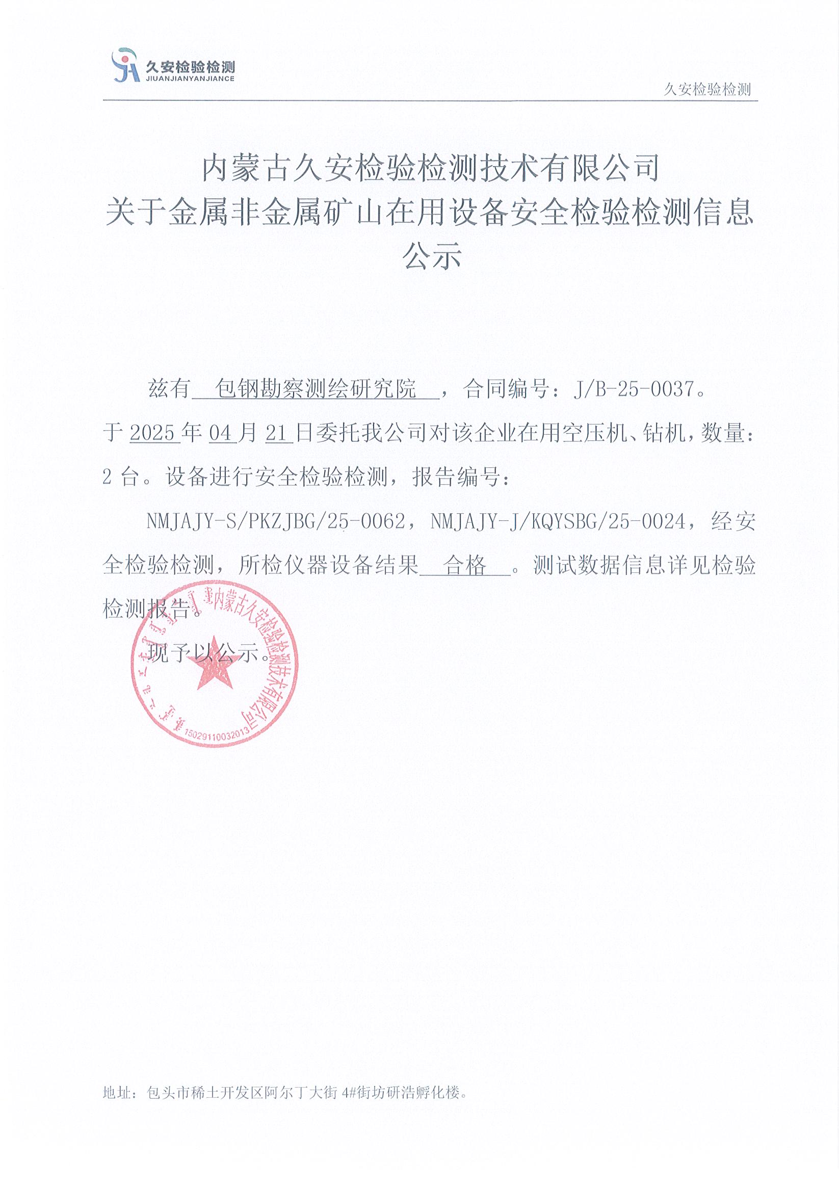38.包钢勘察测绘研究院金属非金属矿山在用设备安全检验检测信息公示