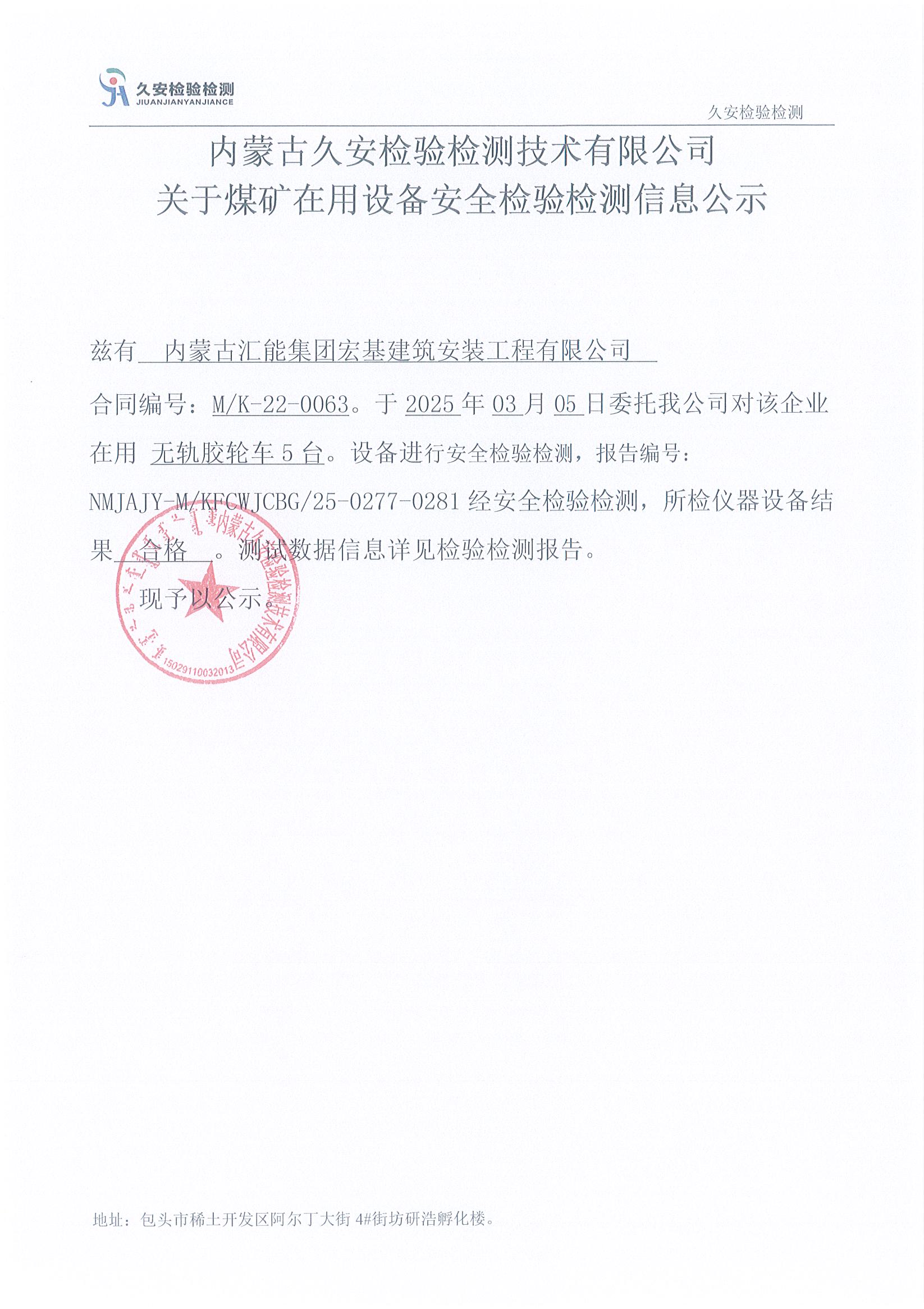 17.内蒙古汇能集团宏基建筑安装工程有限公司煤矿在用设备安全检验检测信息公示