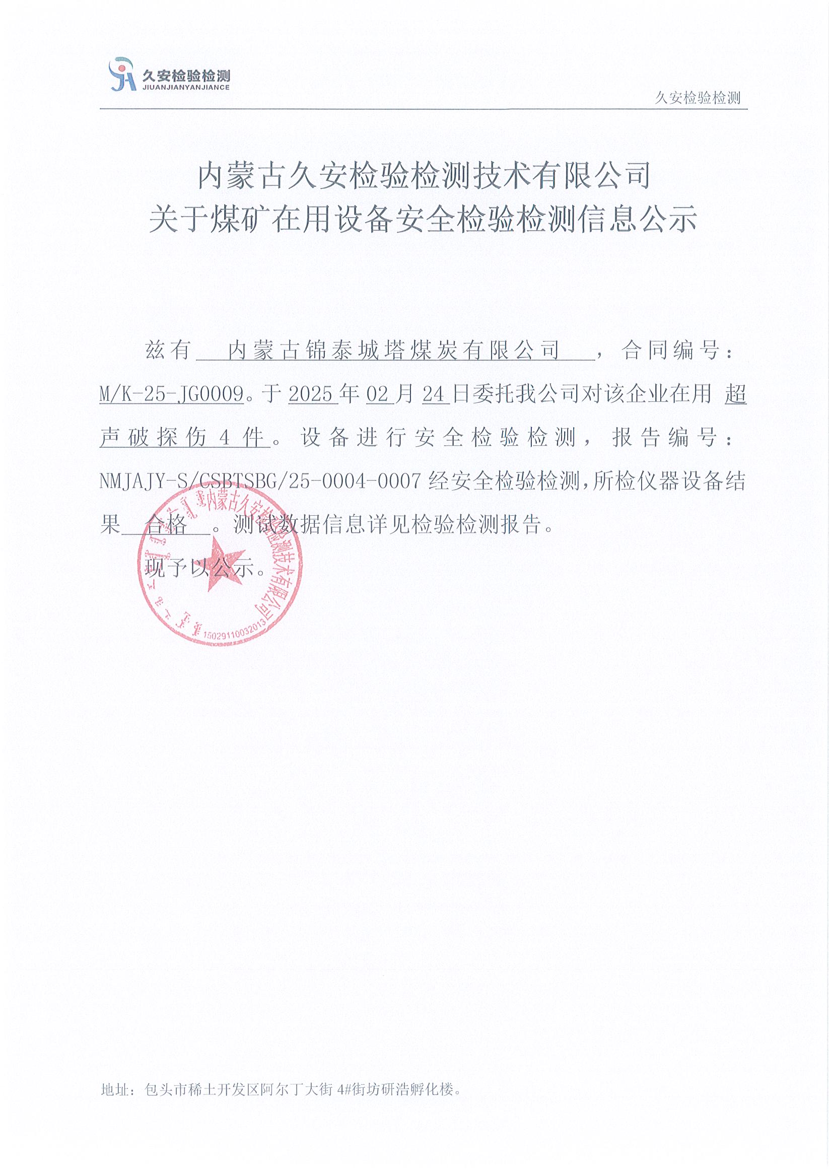 28.内蒙古锦泰城塔煤炭有限公司煤矿在用设备安全检验检测信息公示