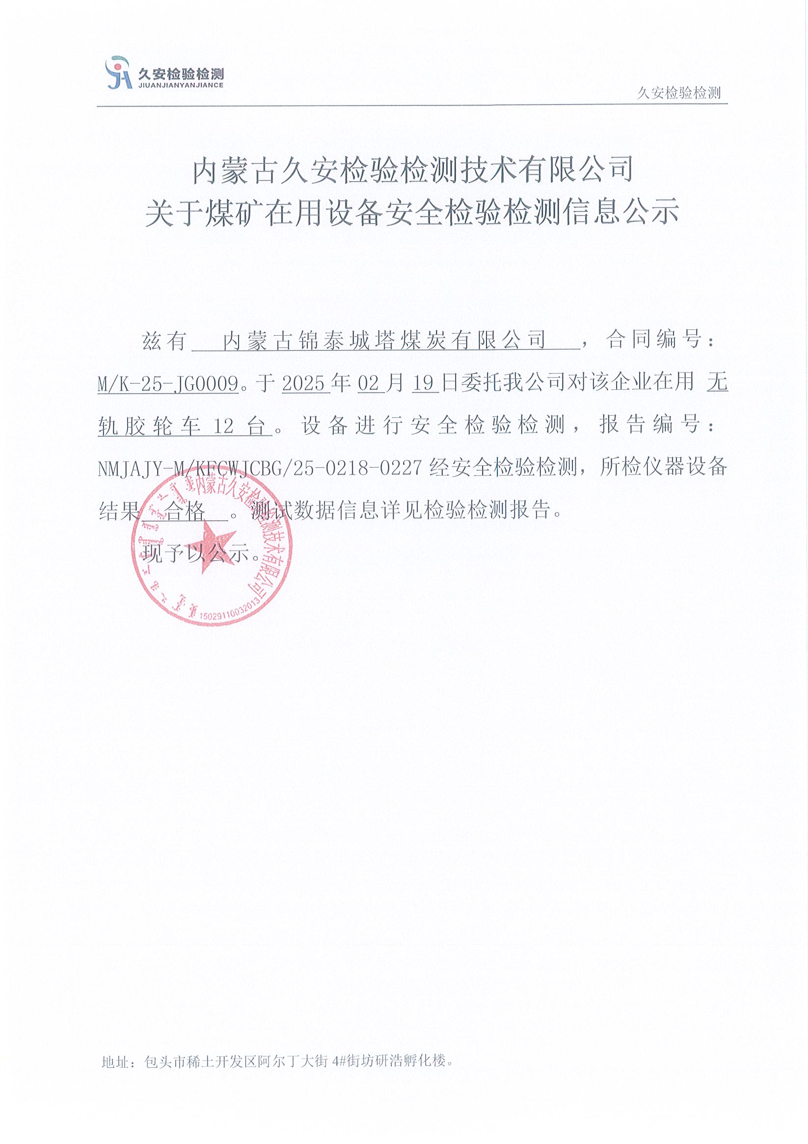 29.内蒙古锦泰城塔煤炭有限公司煤矿在用设备安全检验检测信息公示