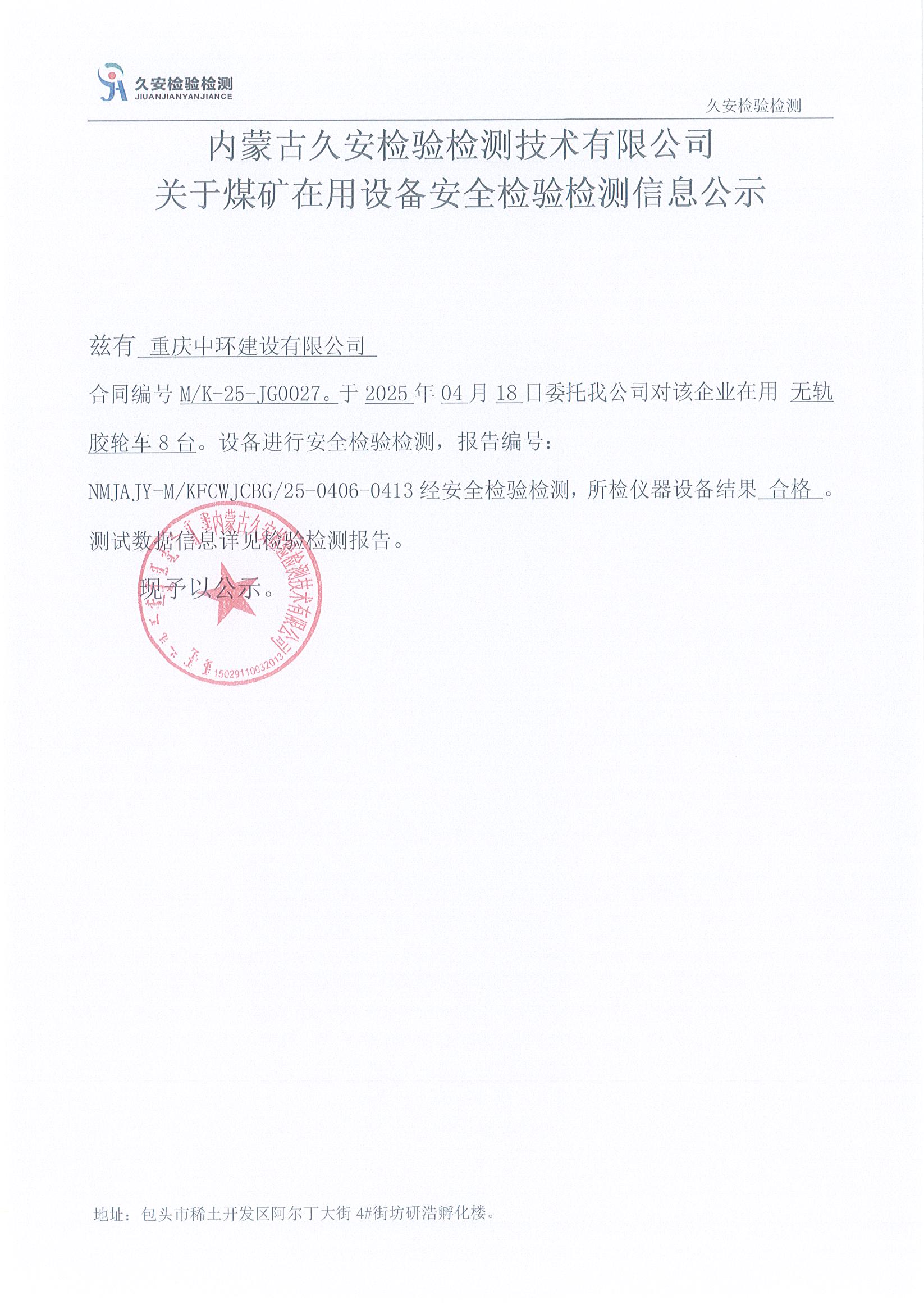 35.重庆中环建设有限公司煤矿在用设备安全检验检测信息公示