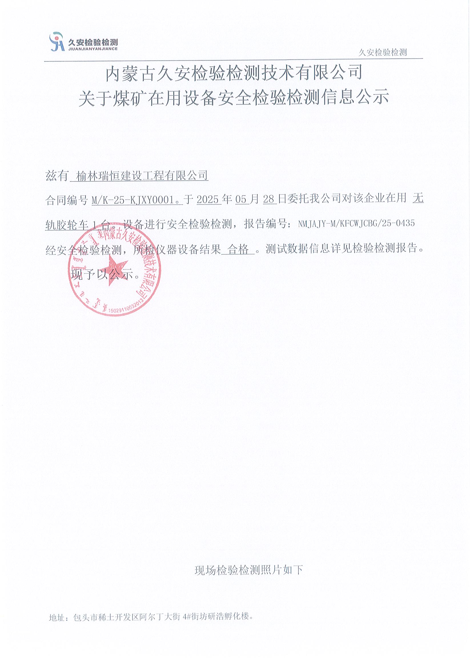 48.榆林瑞恒建设工程有限公司煤矿在用设备安全检验检测信息公示