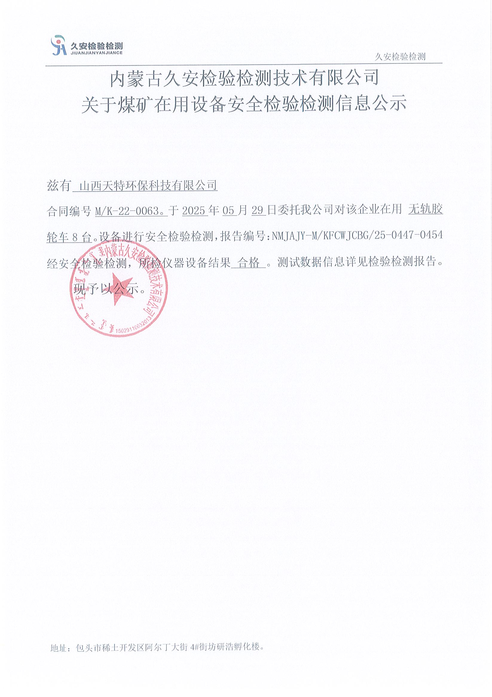 50.山西天特环保科技有限公司煤矿在用设备安全检验检测信息公示