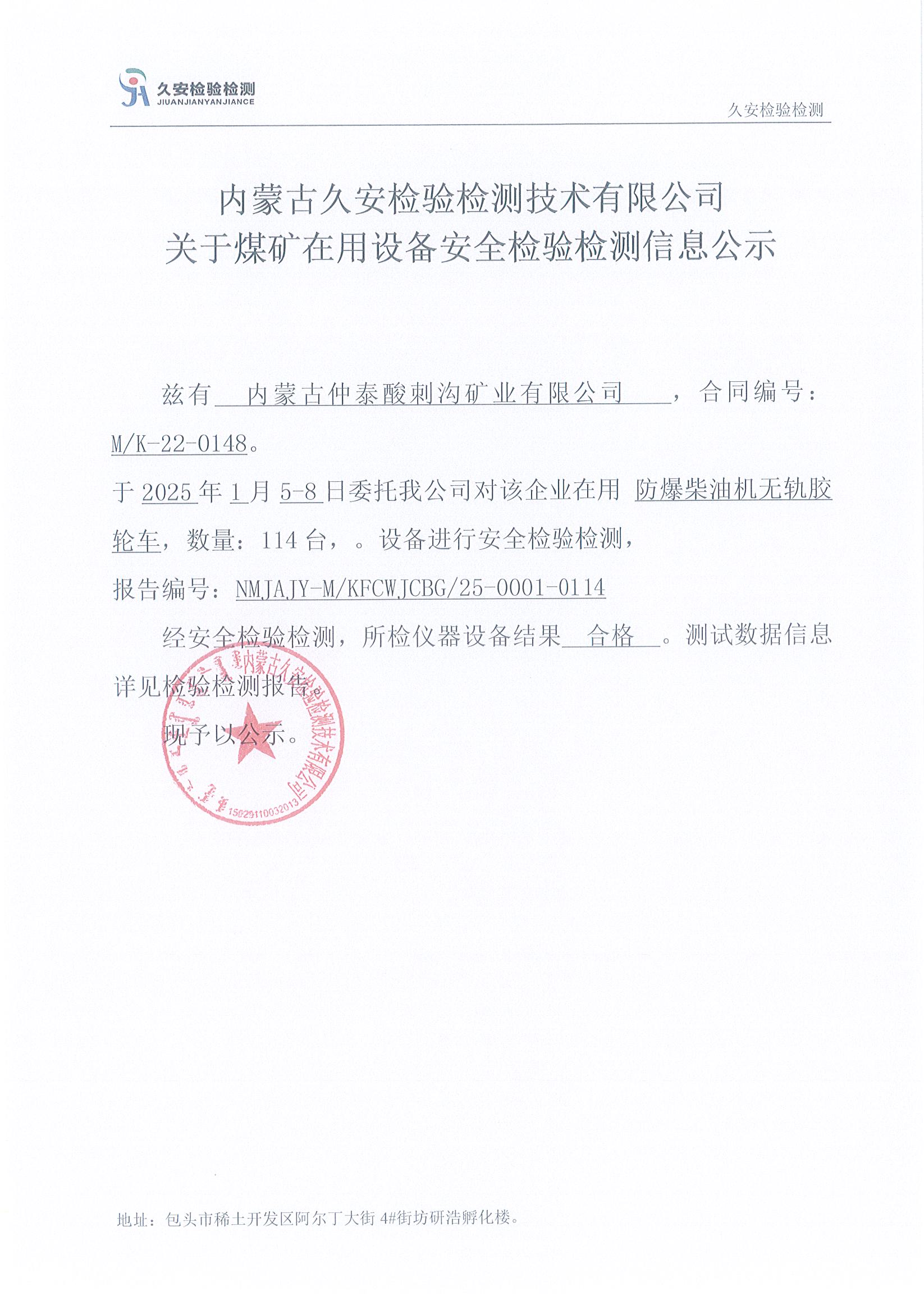 52.内蒙古仲泰酸刺沟矿业有限公司煤矿在用设备安全检验检测信息公示