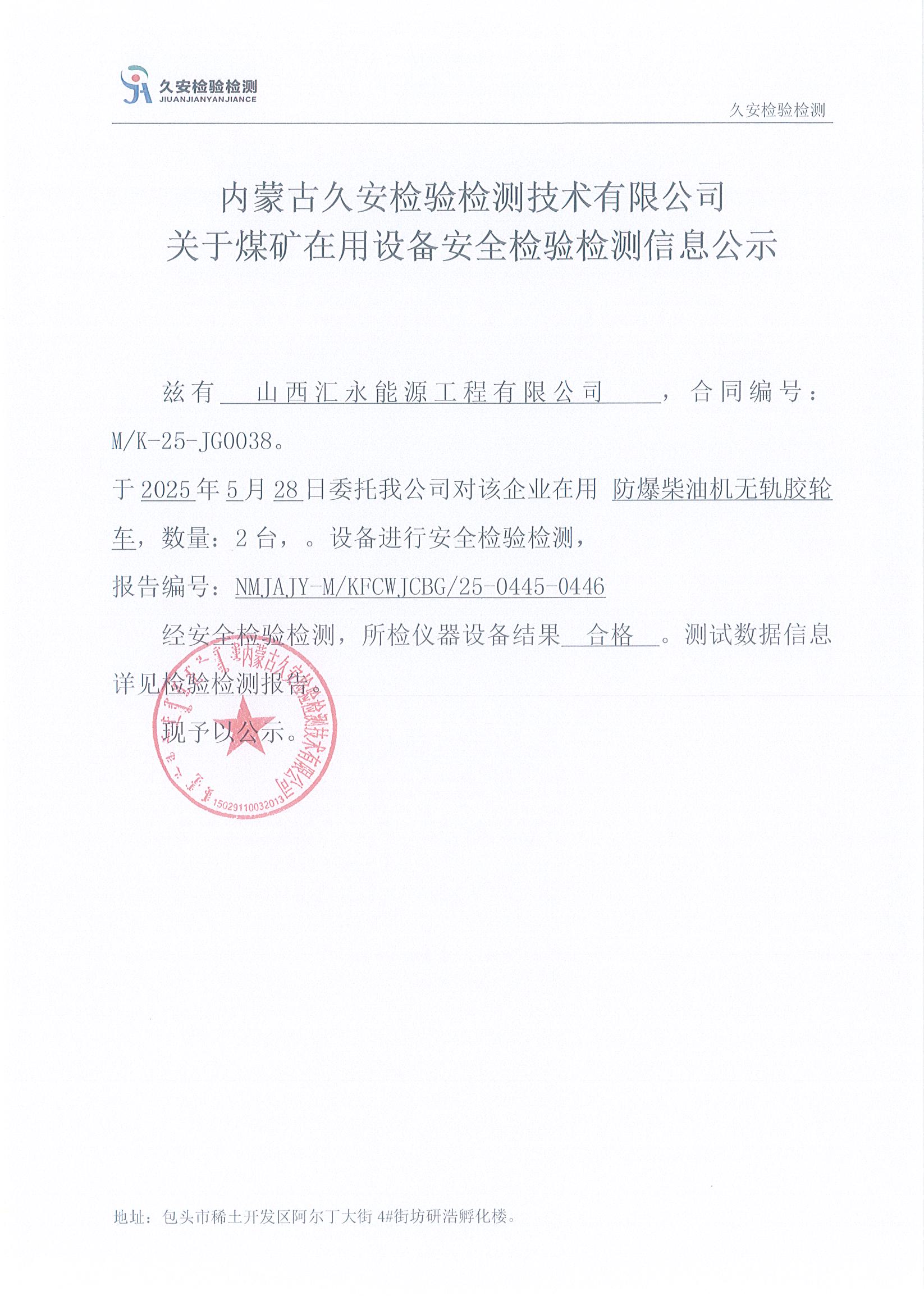 53.山西汇永能源工程有限公司煤矿在用设备安全检验检测信息公示
