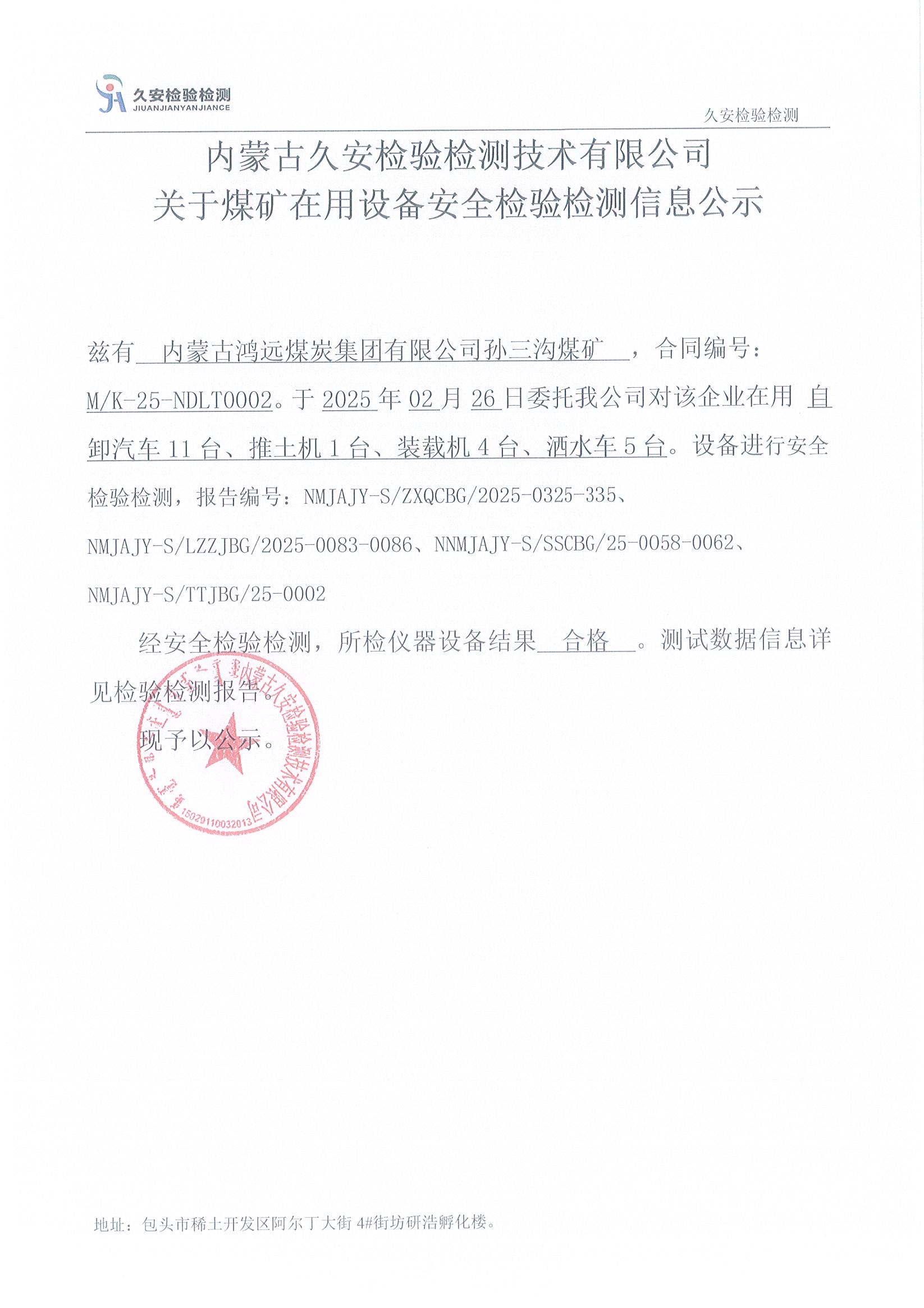 36.内蒙古鸿远煤炭集团有限公司孙三沟煤矿煤矿在用设备安全检验检测信息公示