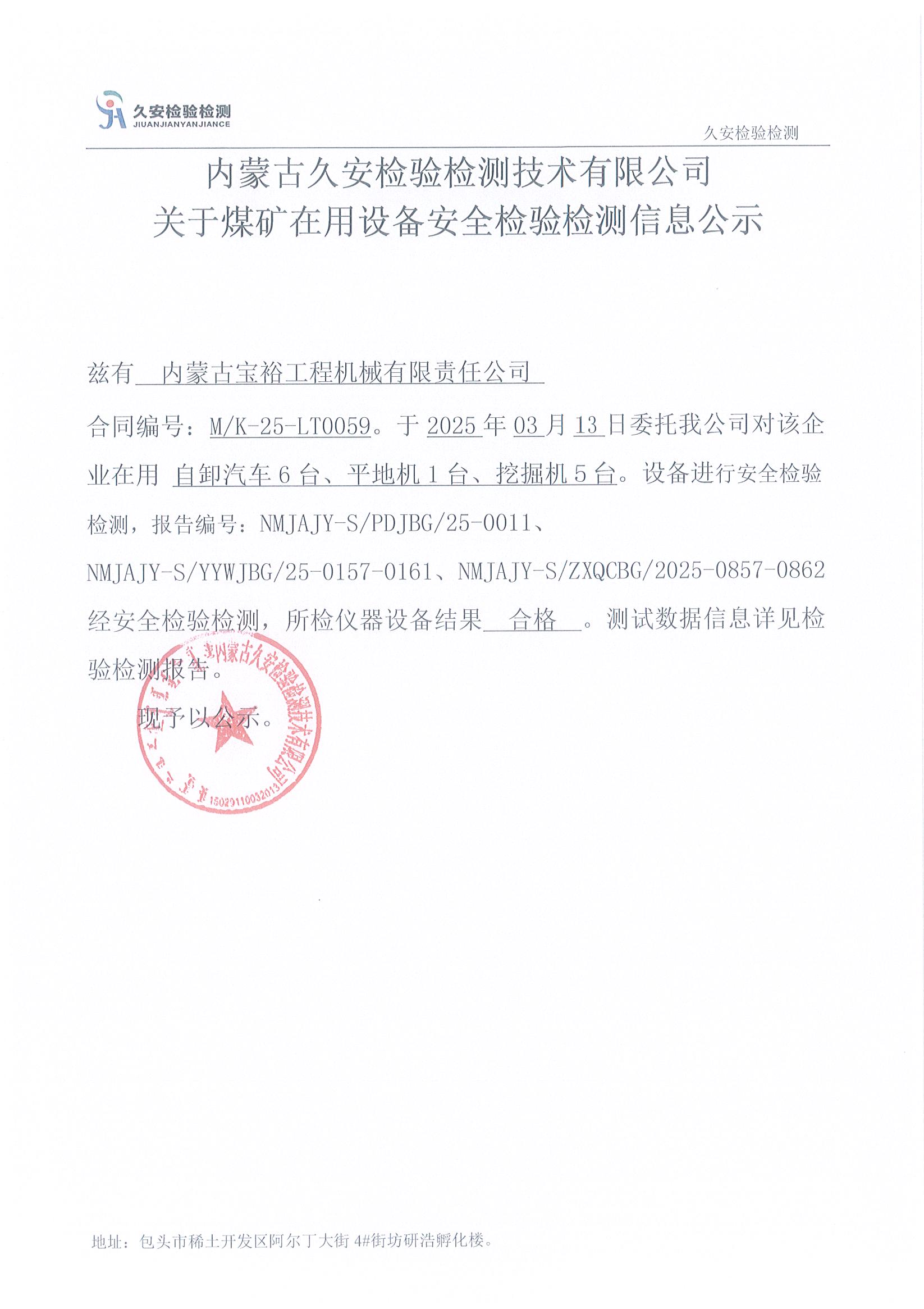 44.内蒙古宝裕工程机械有限责任公司煤矿在用设备安全检验检测信息公示