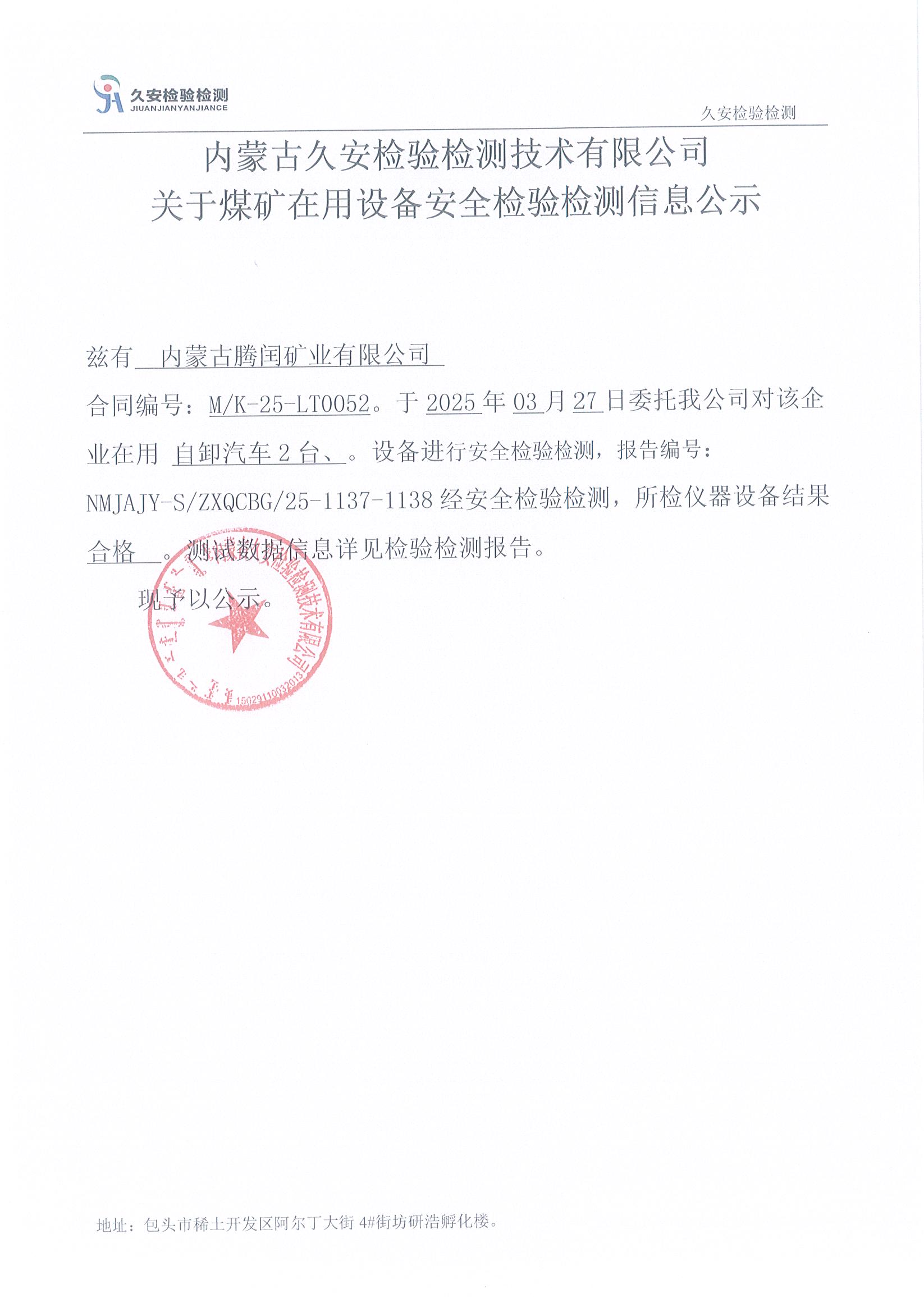 57.内蒙古腾闰矿业有限公司煤矿在用设备安全检验检测信息公示