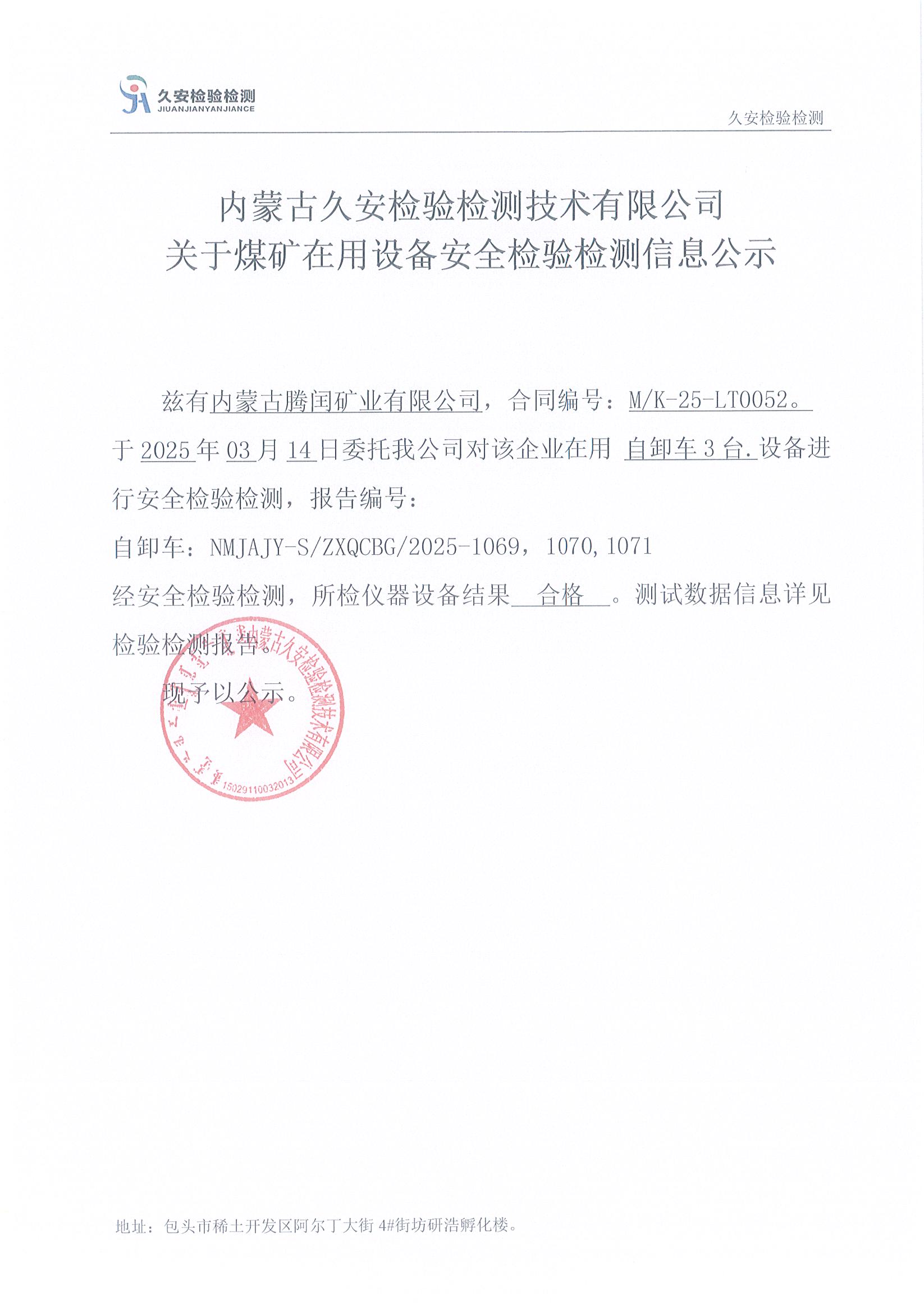 100.内蒙古腾闰矿业有限公司煤矿在用设备安全检验检测信息公示
