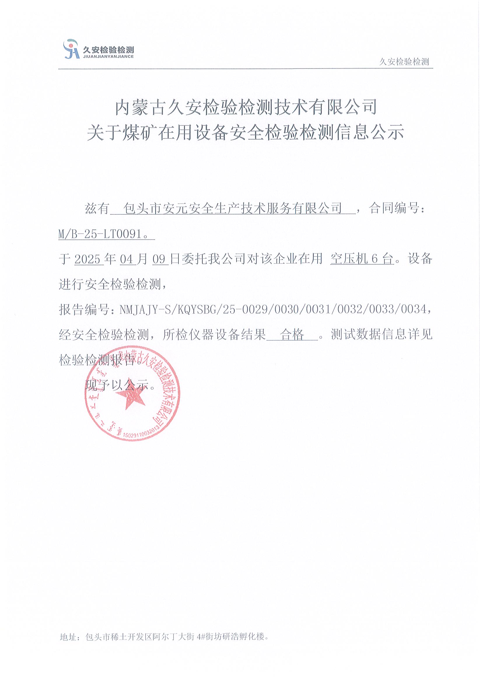 102.包头市安元安全生产技术服务有限公司煤矿在用设备安全检验检测信息公示