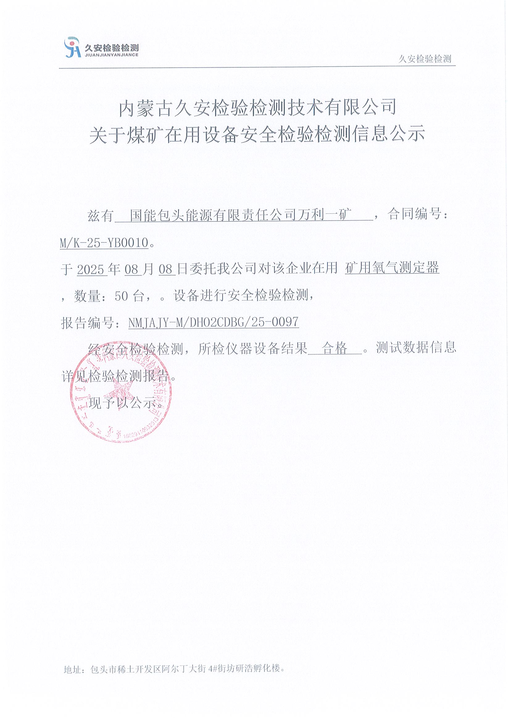 11、国能包头能源有限责任公司万利一矿煤矿在用设备安全检验检测信息公示