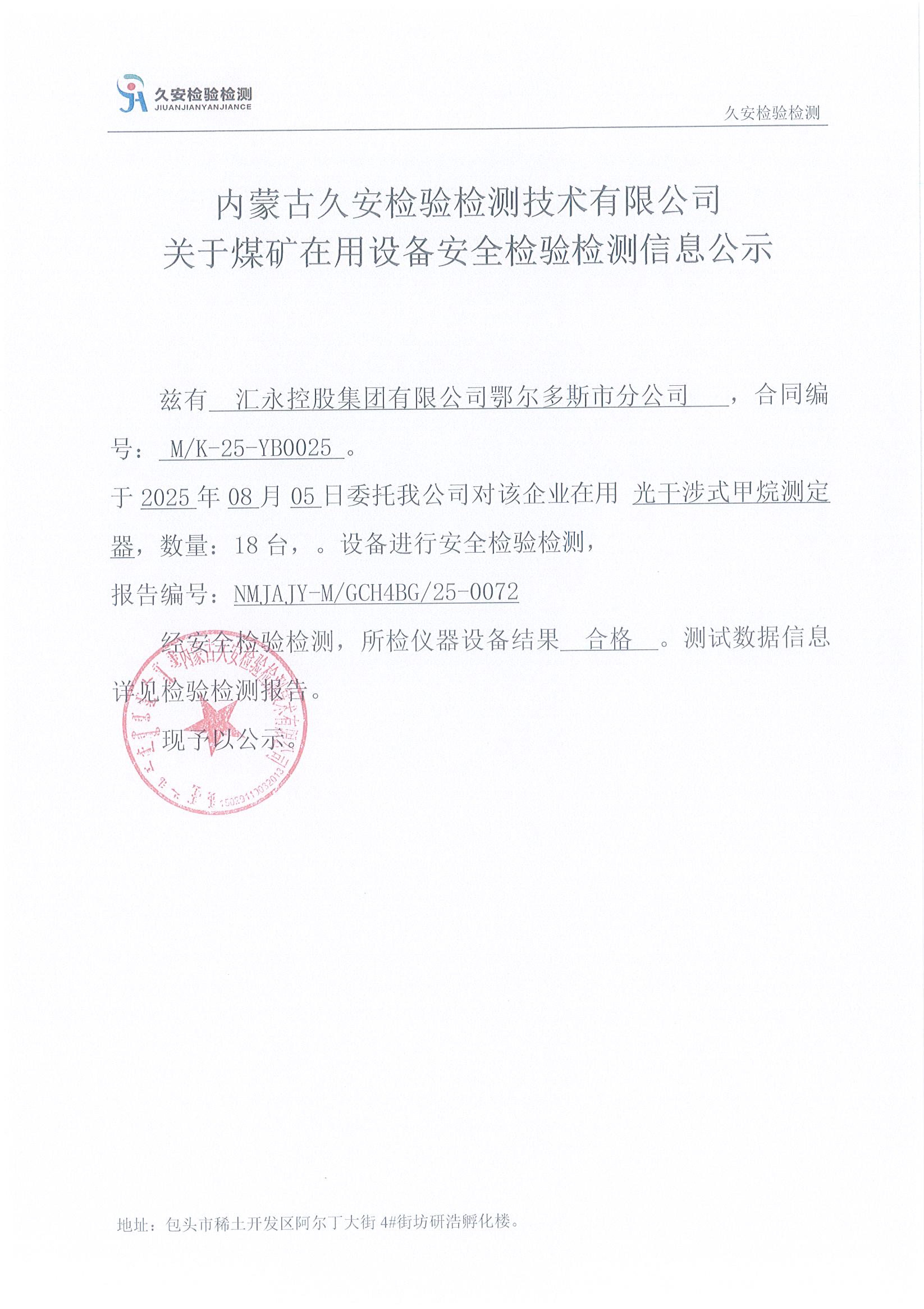 14、汇永控股集团有限公司鄂尔多斯市分公司煤矿在用设备安全检验检测信息公示