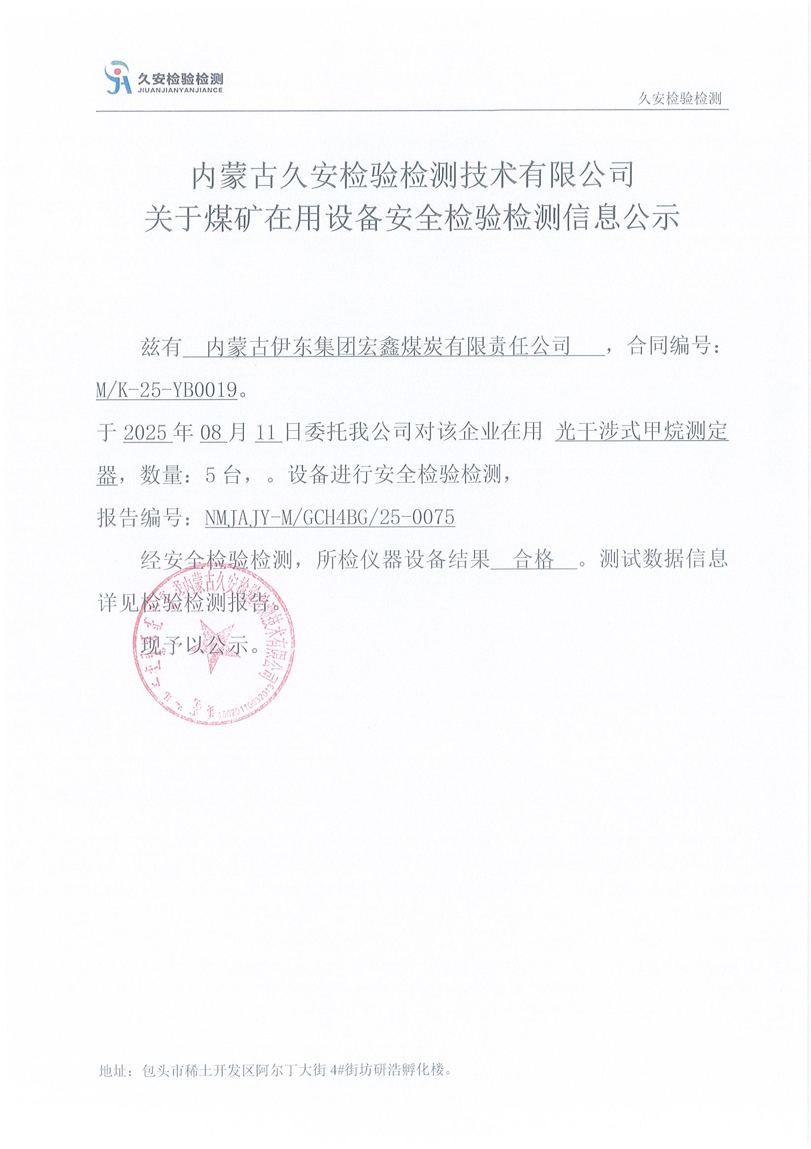 15、内蒙古伊东集团宏鑫煤炭有限责任公司煤矿在用设备安全检验检测信息公示