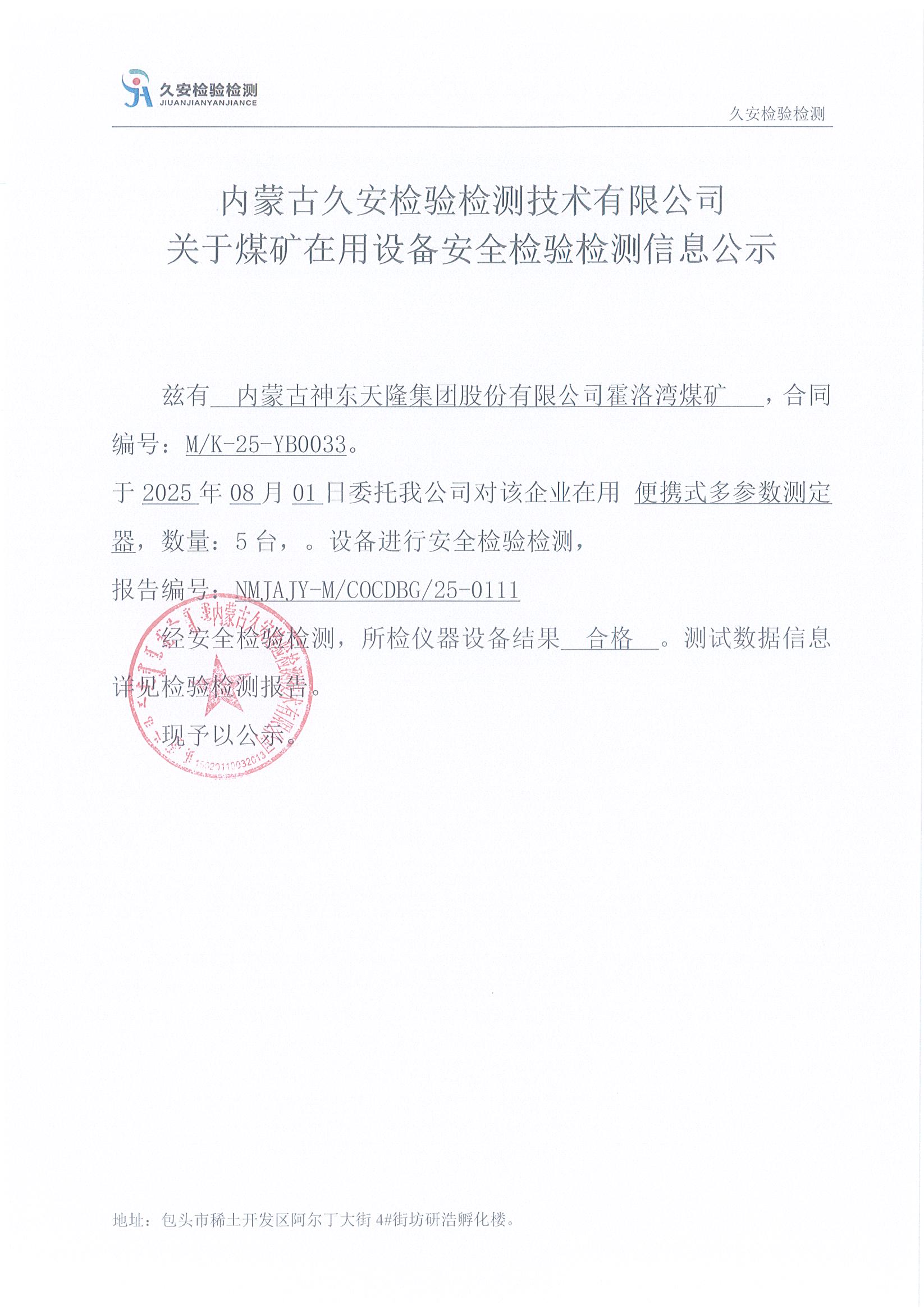 24、内蒙古神东天隆集团股份有限公司霍洛湾煤矿煤矿在用设备安全检验检测信息公示