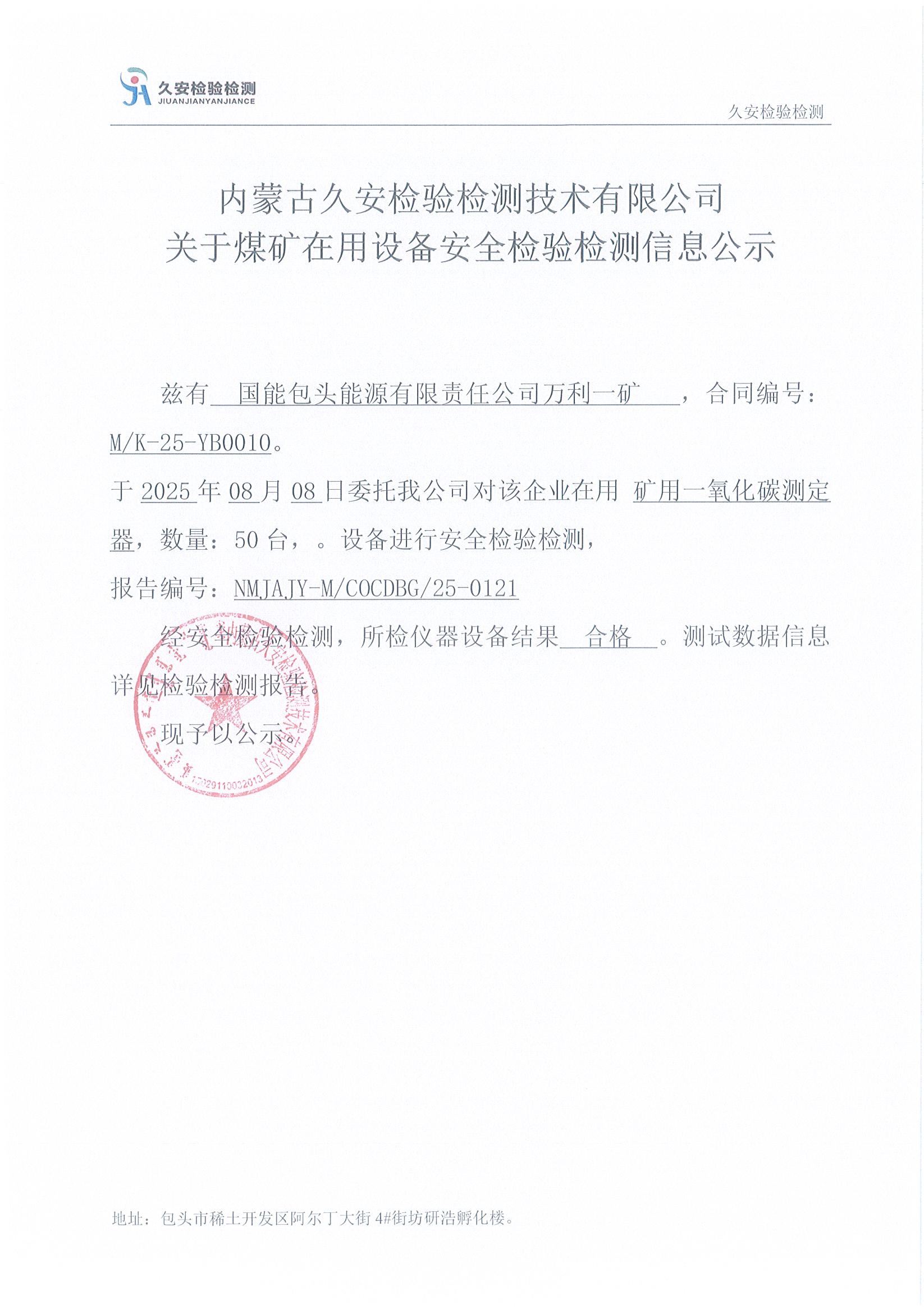 30、国能包头能源有限责任公司万利一矿煤矿在用设备安全检验检测信息公示
