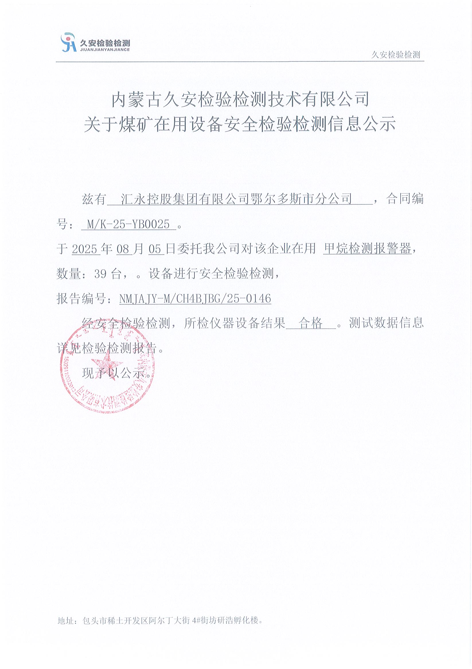 36、汇永控股集团有限公司鄂尔多斯市分公司煤矿在用设备安全检验检测信息公示
