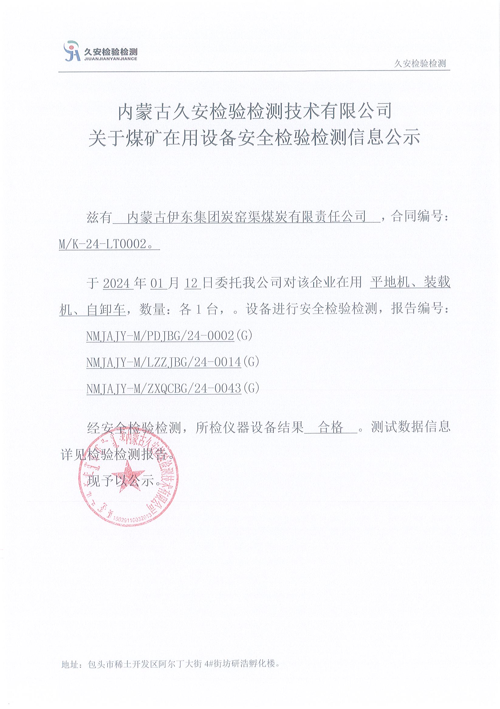 148、内蒙古伊东集团炭窑渠煤炭有限责任公司煤矿在用设备安全检验检测信息公示