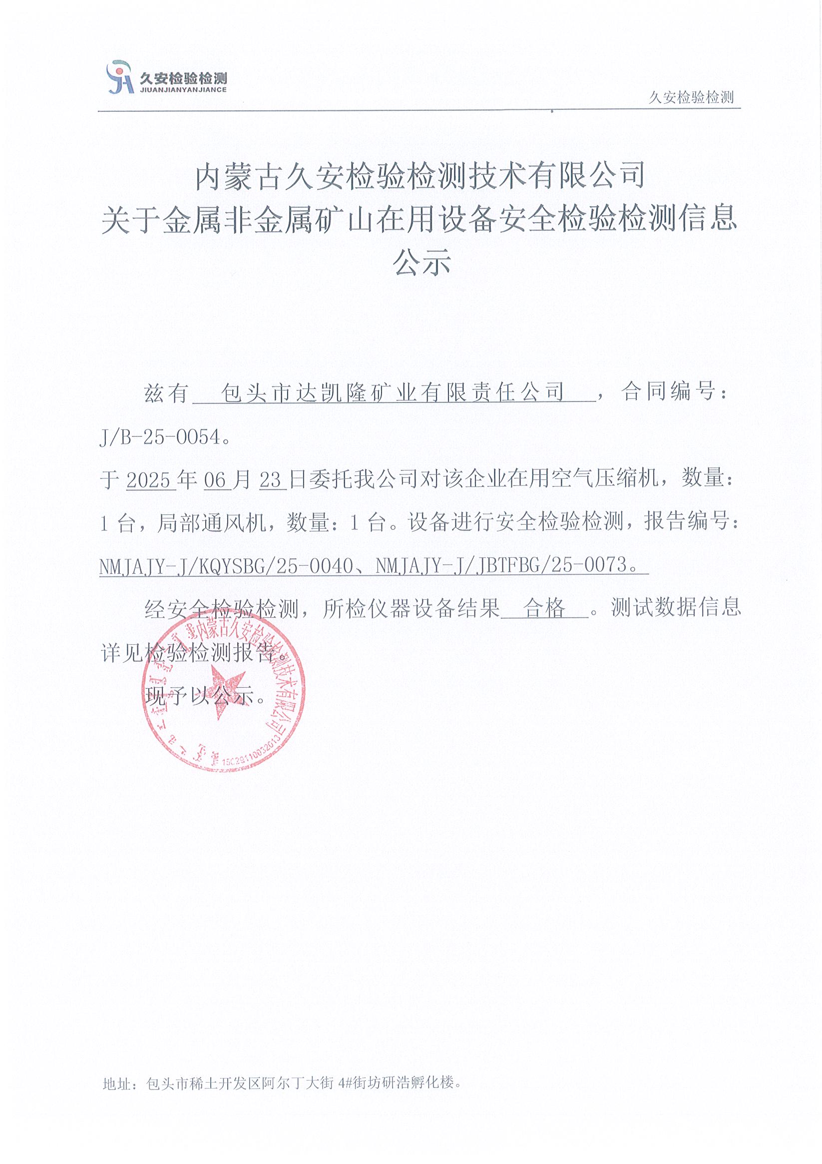 44.包头市达凯隆矿业有限责任公司金属非金属矿山在用设备安全检验检测信息公示