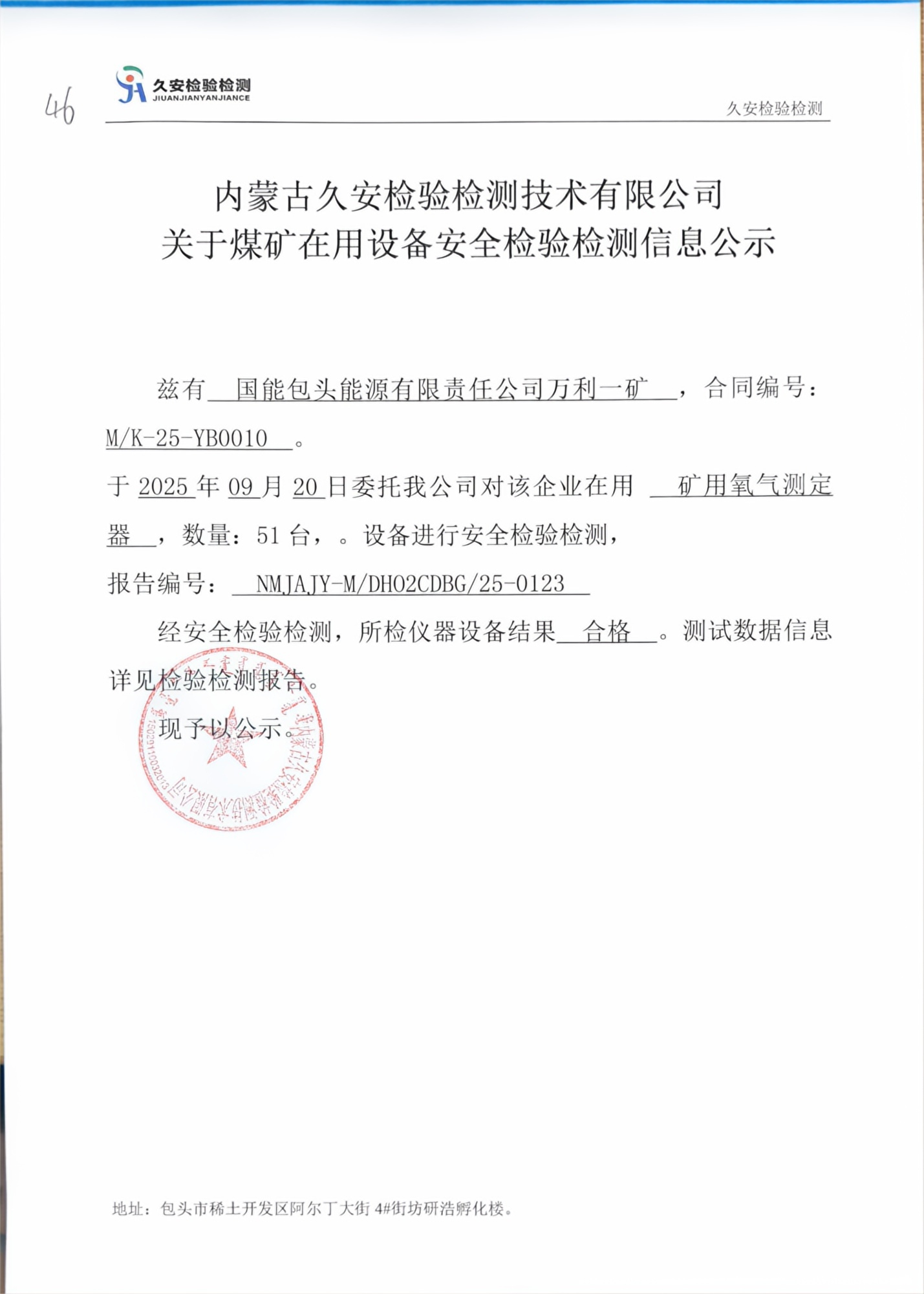 46.国能包头能源有限责任公司万利一矿煤矿在用设备安全检验检测信息公示