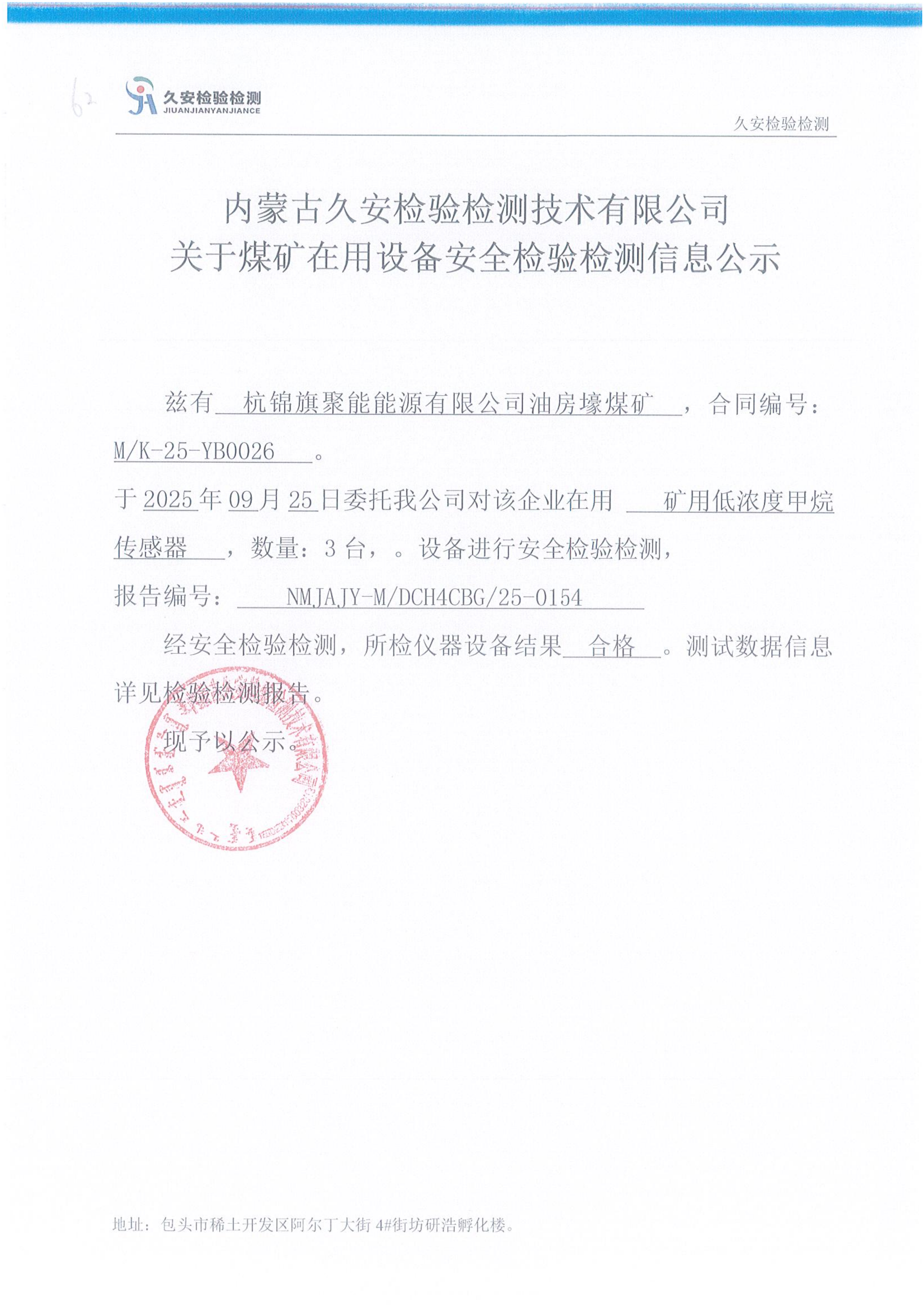 62.杭锦旗聚能能源有限公司油房壕煤矿在用设备安全检验检测信息公示