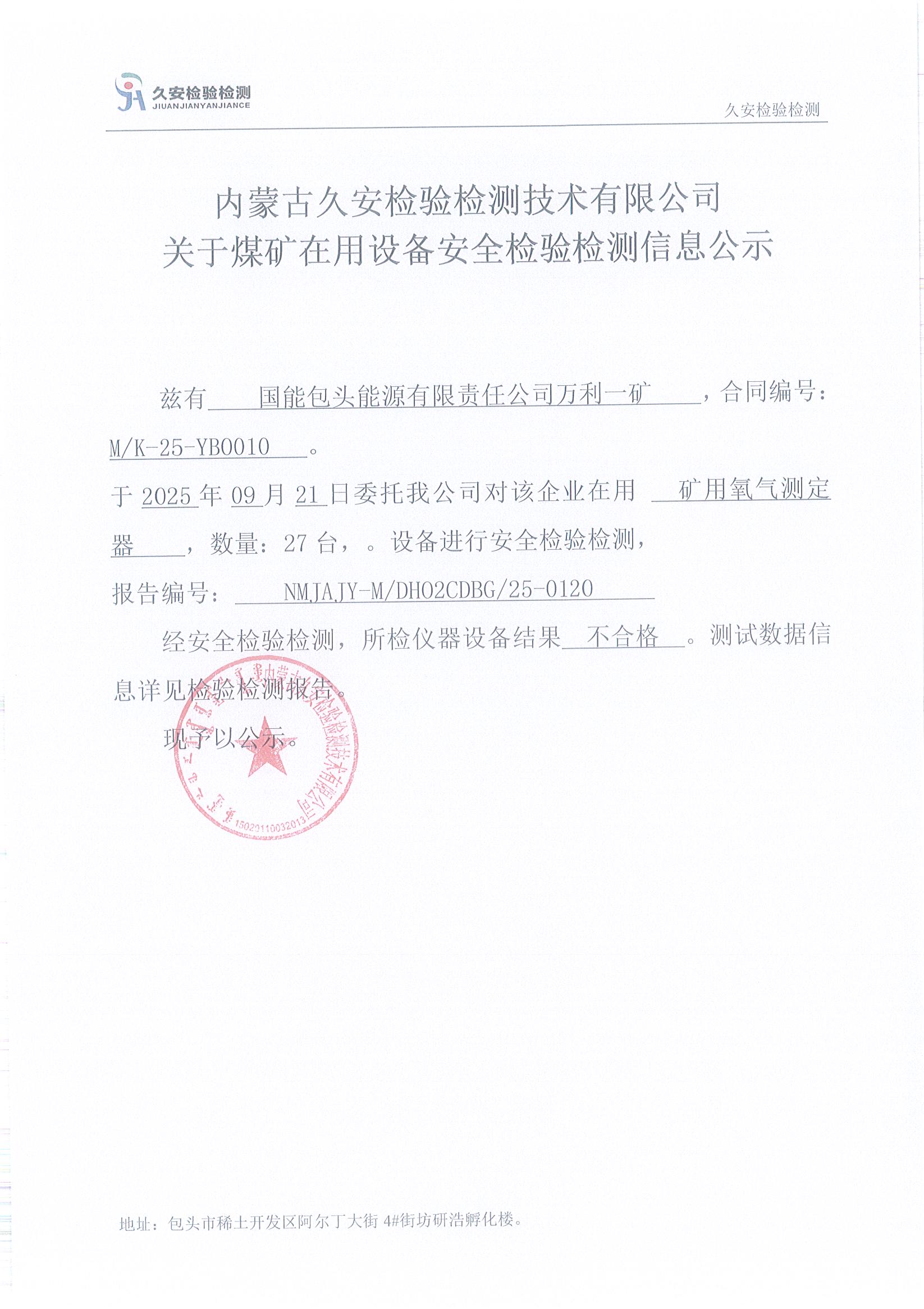 131、国能包头能源有限责任公司万利一矿煤矿在用设备安全检验检测信息公示