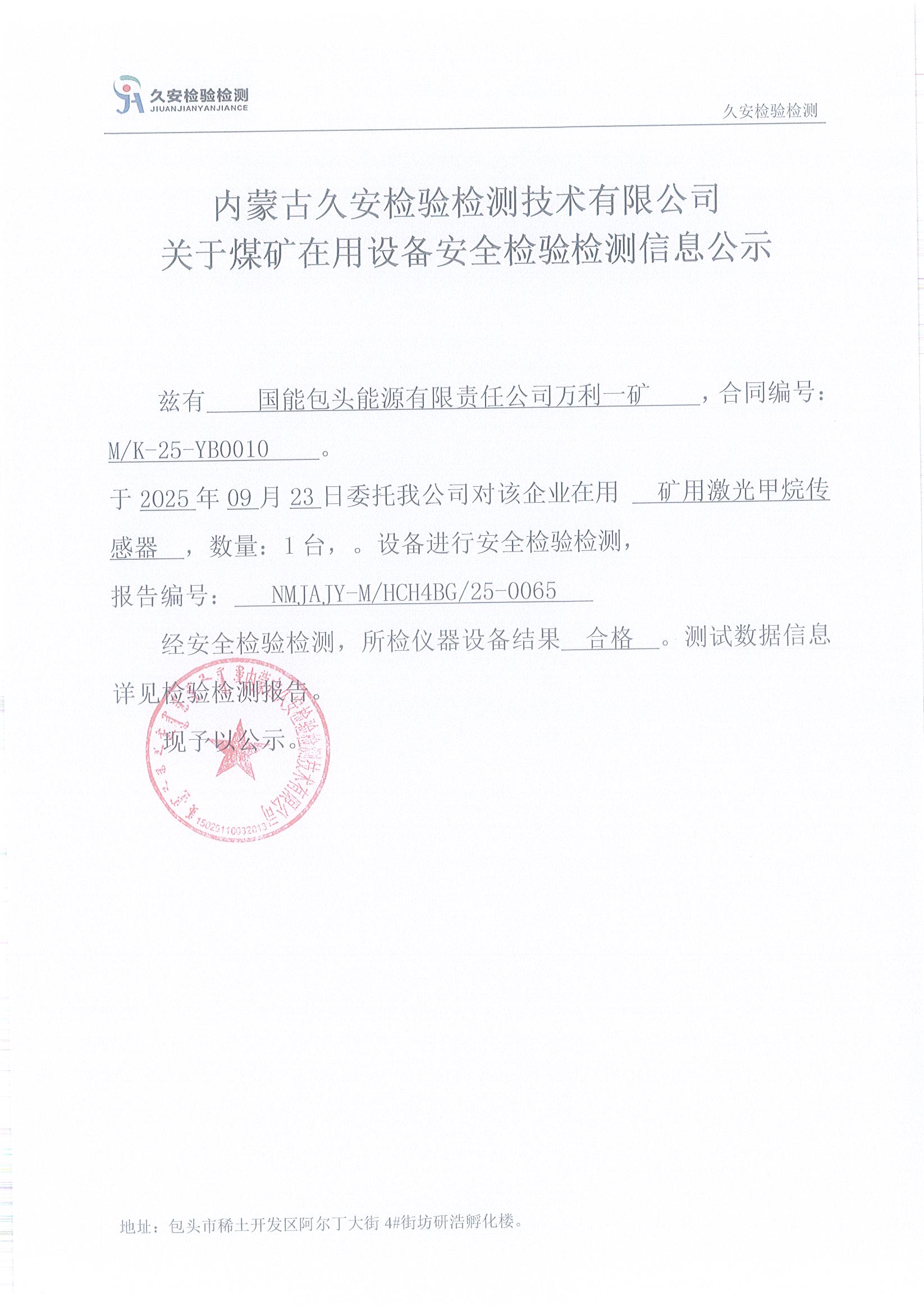 137、国能包头能源有限责任公司万利一矿煤矿在用设备安全检验检测信息公示
