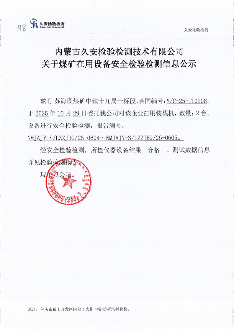 198.苏海图煤矿中铁十九局一标段煤矿在用设备安全检验检测信息公示