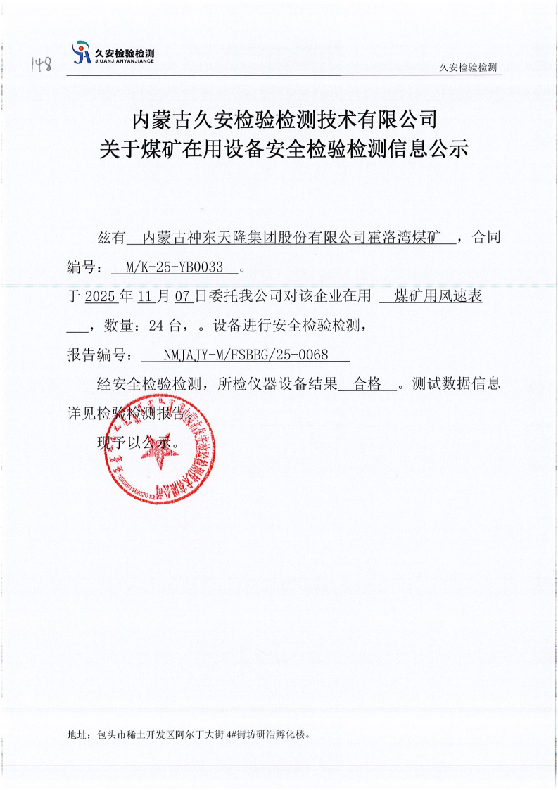 148.内蒙古神东天隆集团股份有限公司霍洛湾煤矿在用设备安全检验检测信息公示