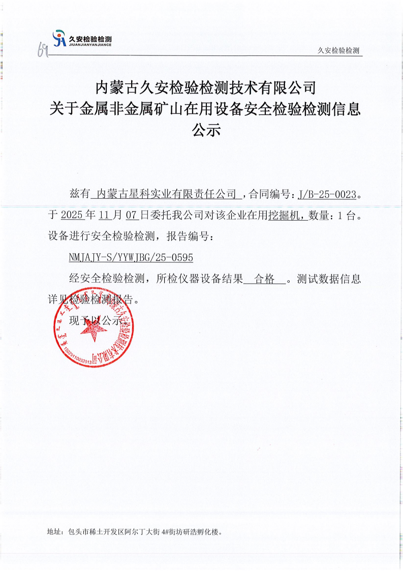 69.内蒙古星科实业有限责任公司金属非金属矿山在用设备安全检验检测信息公示