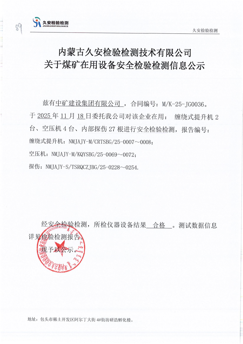 89.中矿建设集团有限公司煤矿在用设备安全检验检测信息公示