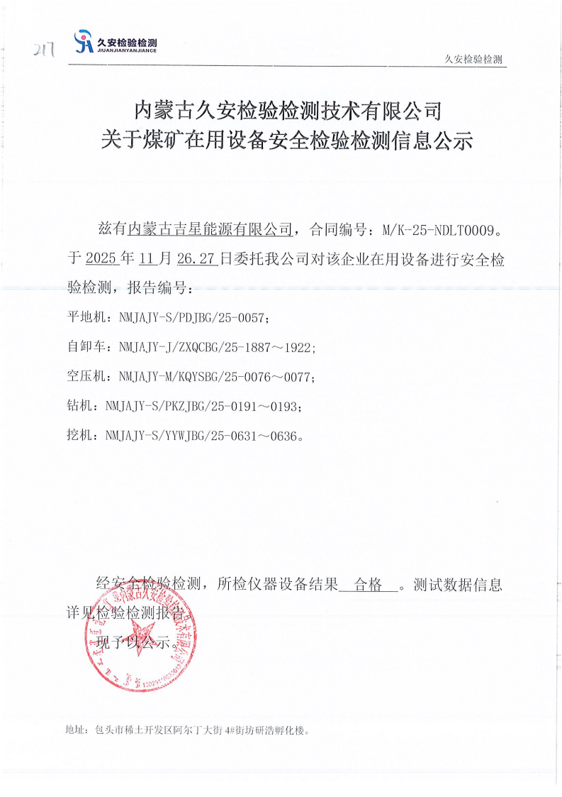 217.内蒙古吉星能源有限公司煤矿在用设备安全检验检测信息公示