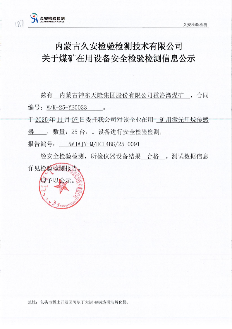 187.内蒙古神东天隆集团股份有限公司霍洛湾煤矿在用设备安全检验检测信息公示