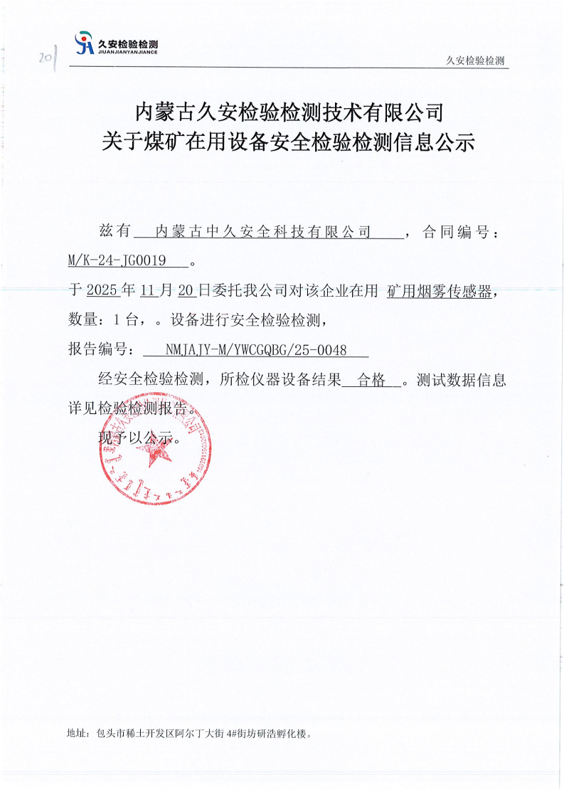 201.内蒙古中久安全科技有限公司煤矿在用设备安全检验检测信息公示