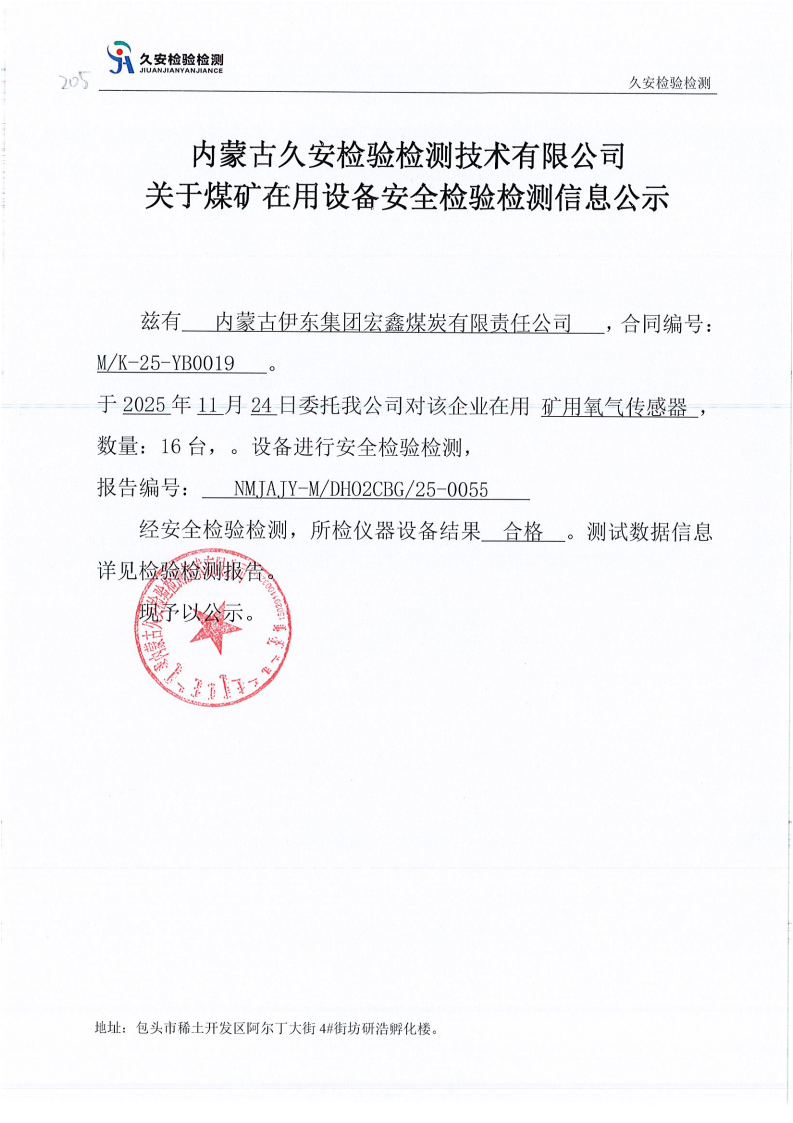 205.内蒙古伊东集团宏鑫煤炭有限责任公司煤矿在用设备安全检验检测信息公示