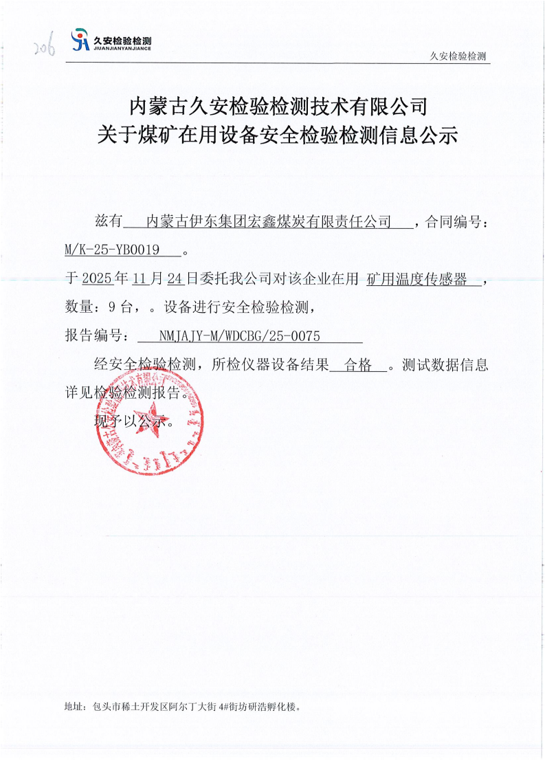 206.内蒙古伊东集团宏鑫煤炭有限责任公司煤矿在用设备安全检验检测信息公示