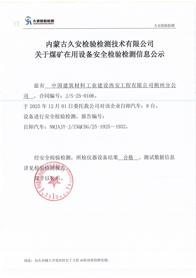 77.中国建筑材料工业建设西安工程有限公司朔州分公司金属非金属矿山在用设备安全检验检测信息公示