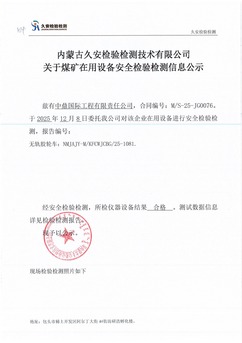104.中鼎国际工程有限责任公司煤矿在用设备安全检验检测信息公示